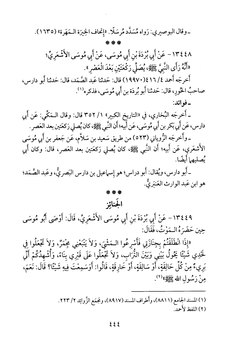 ١٣٤٤٩ - عن أبي بردة بن أبي موسى الأشعري، قال: أوصى أَبو موسى حين حضره الموت، فقال: