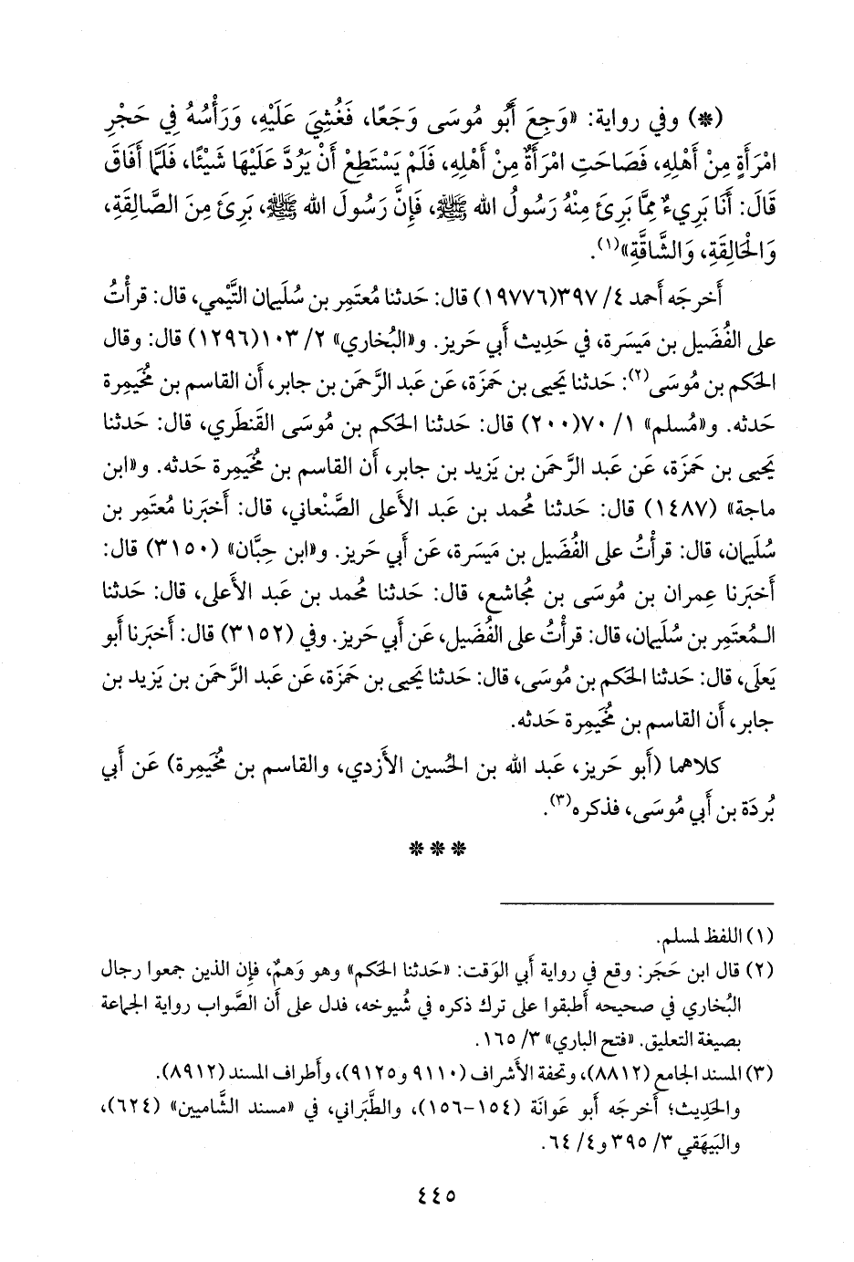 (¬٢) المسند الجامع (٨٨١٢)، وتحفة الأشراف (٩١١٠ و ٩١٢٥)، وأطراف المسند (٨٩١٢).