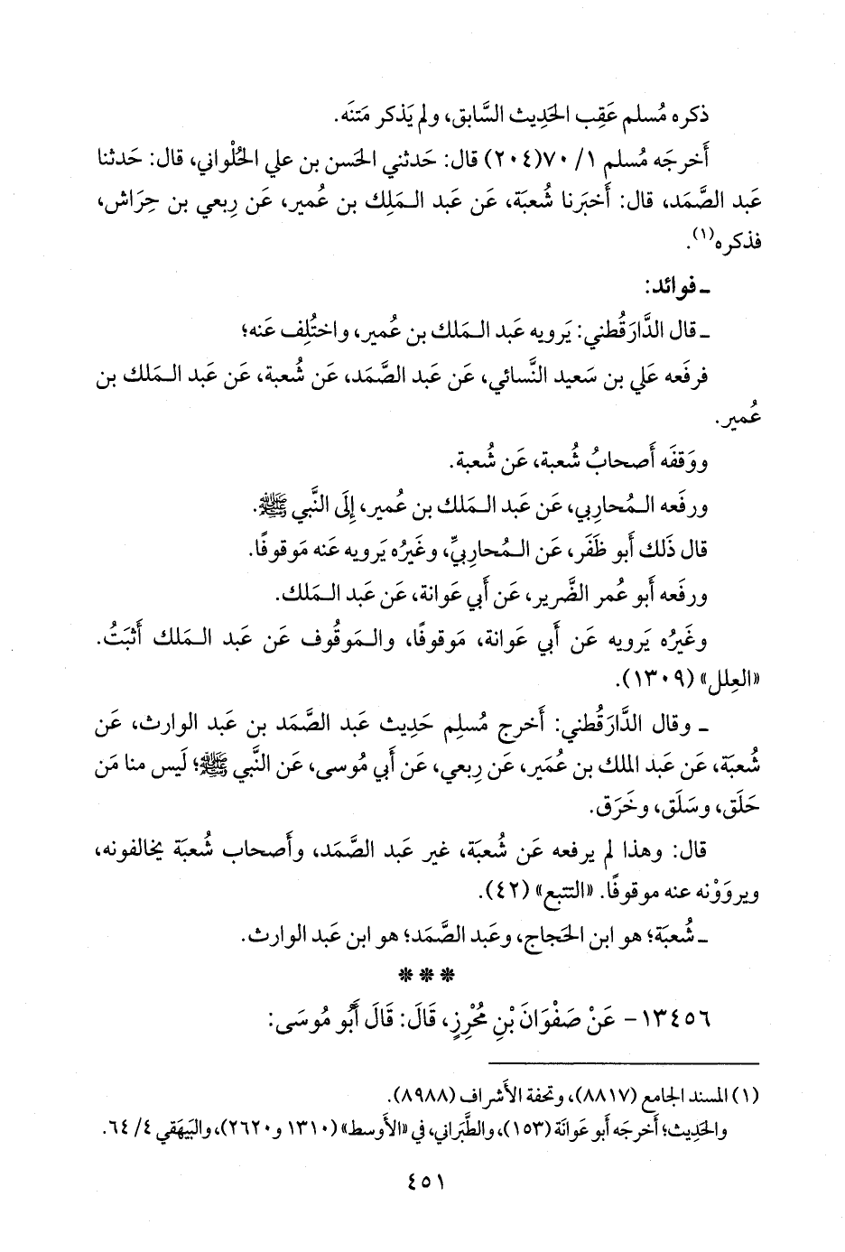 - وقال الدارقُطني: أخرج مسلم حديث عبد الصمد بن عبد الوارث، عن شعبة، عن عبد الملك بن عمير، عن رِبعي، عن أبي موسى، عن النبي صَلى الله عَليه وسَلم؛ ليس منا من حلق، وسلق، وخرق.