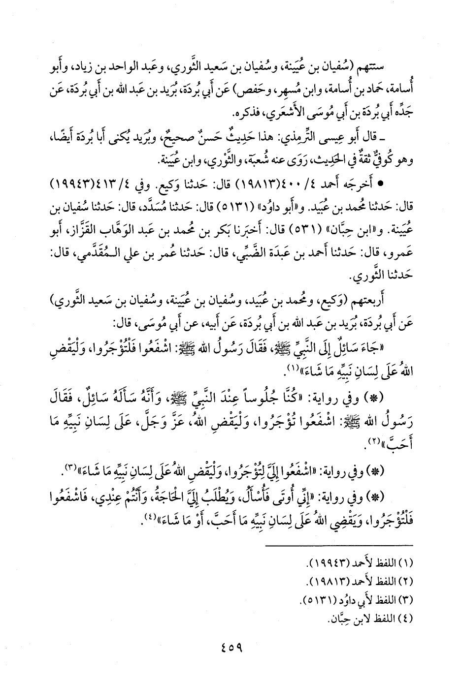 أربعتهم (وكيع، ومحمد بن عبيد، وسفيان بن عُيينة، وسفيان بن سعيد الثوري) عن أبي بردة، بريد بن عبد الله بن أبي بردة، عن أبيه، عن أبي موسى، قال: