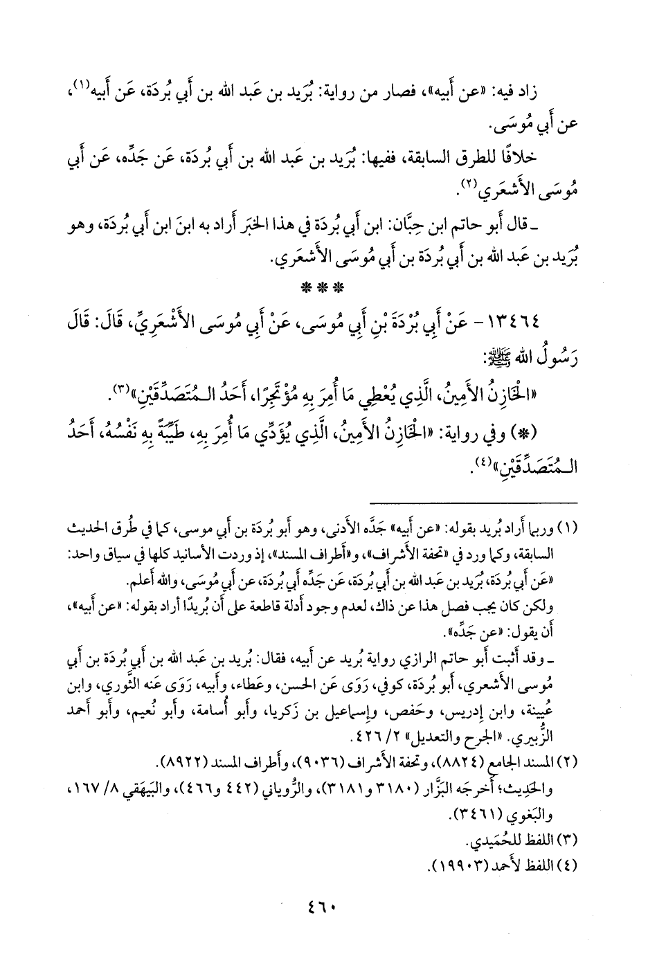 ١٣٤٦٤ - عن أبي بردة بن أبي موسى، عن أبي موسى الأشعري، قال: قال رسول الله صَلى الله عَليه وسَلم: