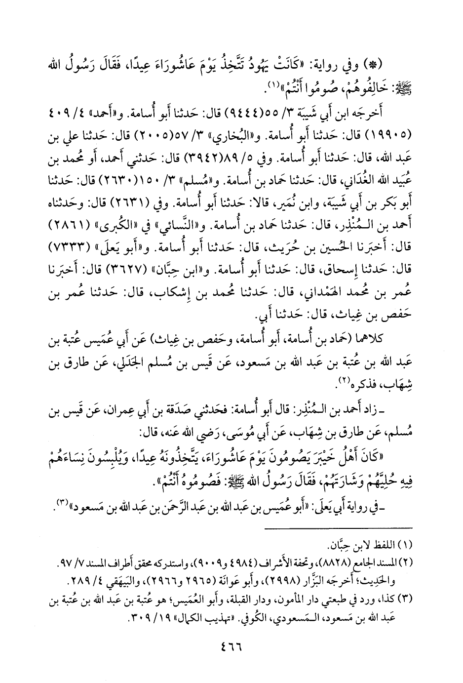 (¬٢) كذا، ورد في في طبعات دار القِبلة والمأمون والتأصيل، وأَبو العميس؛ هو عتبة بن عبد الله بن عُتبة بن عبد الله بن مسعود، المَسعودي، الكوفي. «تهذيب الكمال» ١٩/ ٣٠٩.
