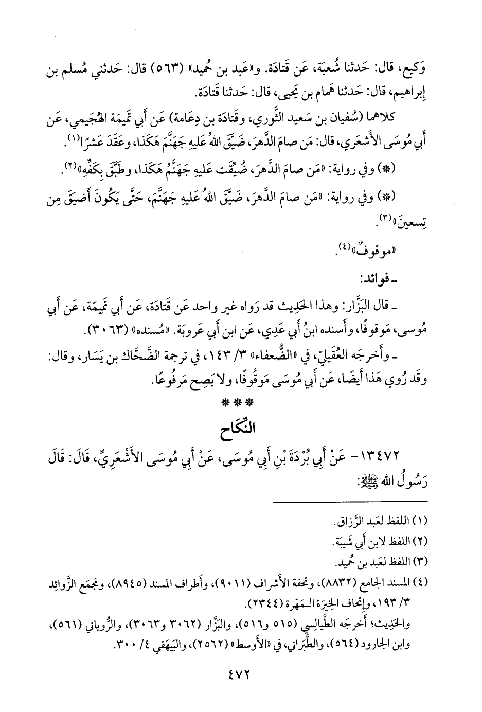 ١٣٤٧٢ - عن أبي بردة بن أبي موسى، عن أبي موسى الأشعري، قال: قال رسول الله صَلى الله عَليه وسَلم: