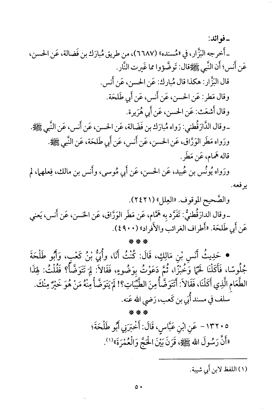 - وقال الدارقُطني: تفرد به همام، عن مطر الوراق، عن الحسن، عن أَنس، يعني عن أبي طلحة. «أطراف الغرائب والأفراد» (٤٩٠٠).