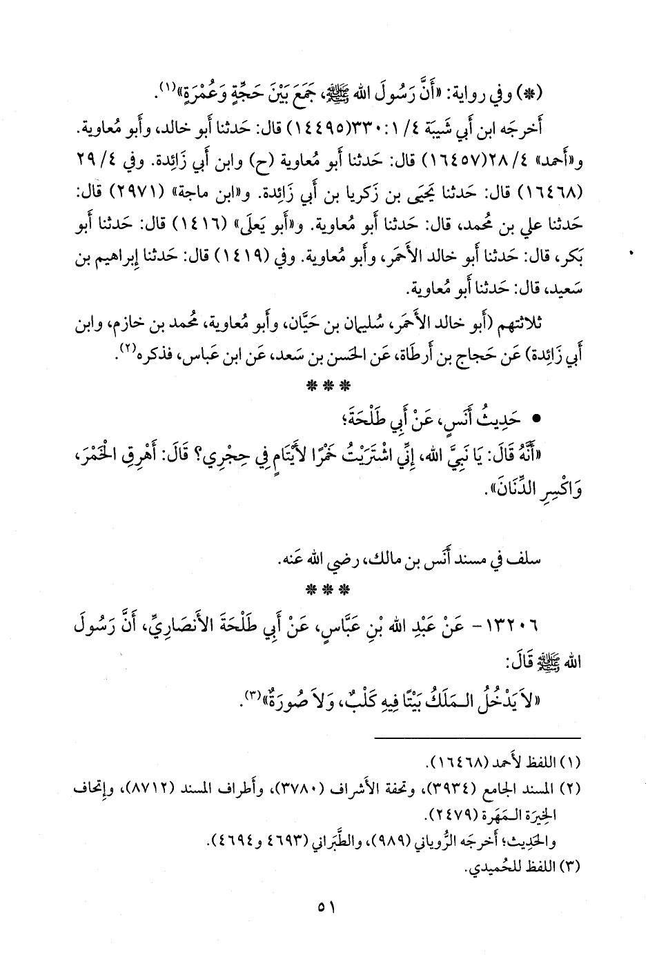 ١٣٢٠٦ - عن عبد الله بن عباس، عن أبي طلحة الأَنصاري، أن رسول الله صَلى الله عَليه وسَلم قال:
