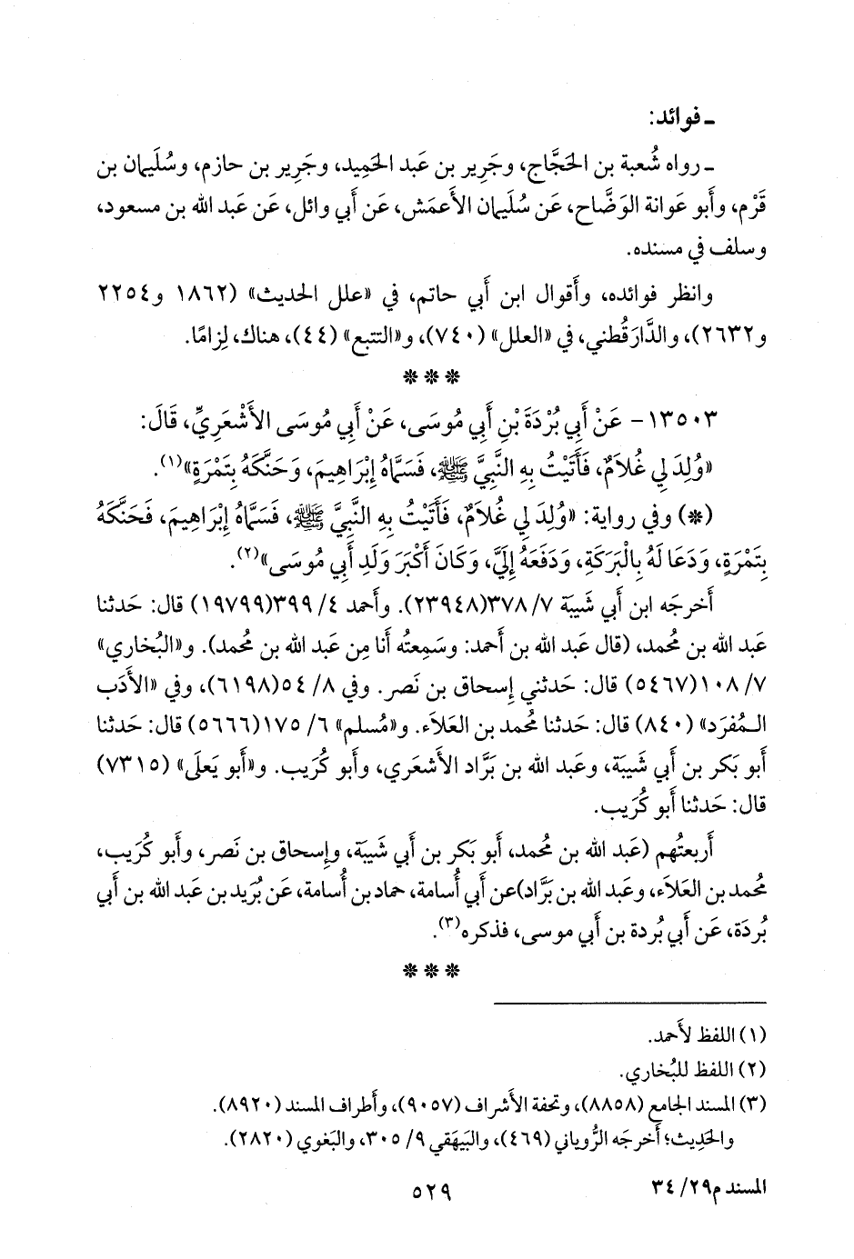 أربعتهم (عبد الله بن محمد أَبو بكر بن أبي شيبة، وإسحاق بن نصر، وأَبو كُريب محمد بن العلاء، وعبد الله بن براد) عن أبي أُسامة حماد بن أُسامة، عن بريد بن عبد الله بن أبي بردة، عن أبي بردة بن أبي موسى، فذكره (¬٣).