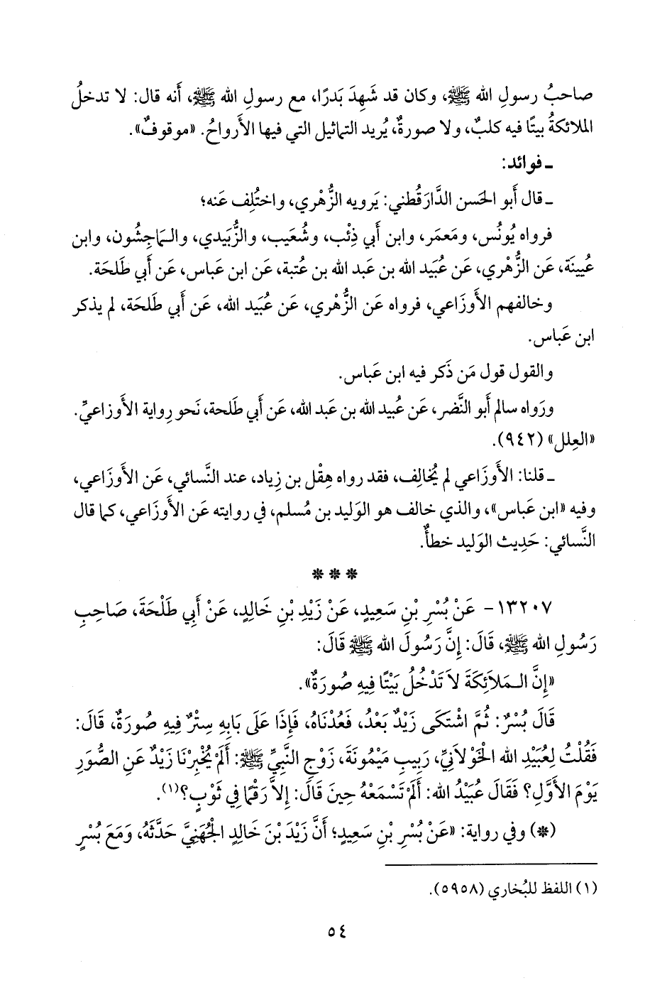 ١٣٢٠٧ - عن بُسر بن سعيد، عن زيد بن خالد، عن أبي طلحة، صاحب رسول الله صَلى الله عَليه وسَلم قال: إن رسول الله صَلى الله عَليه وسَلم قال: