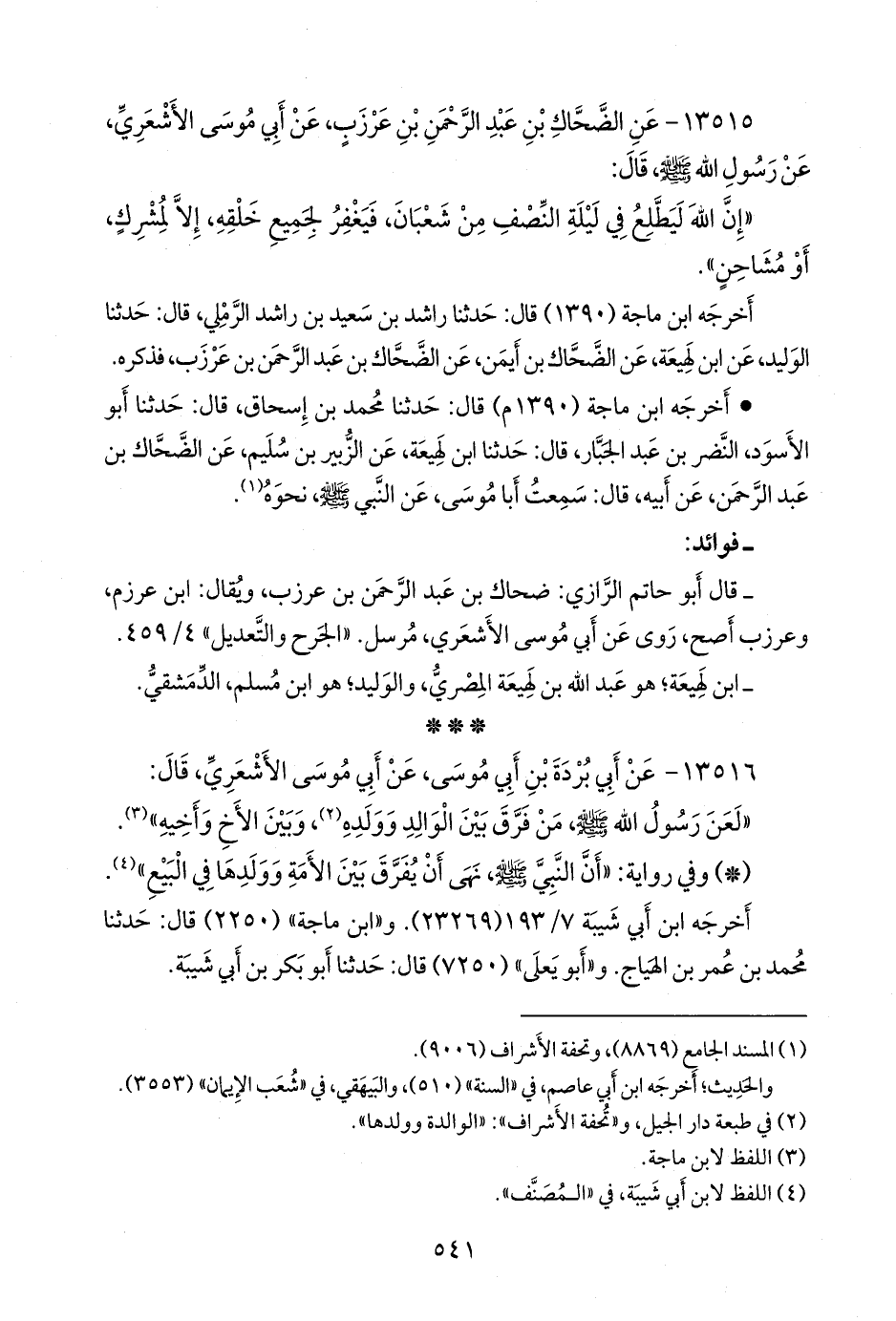 ١٣٥١٥ - عن الضحاك بن عبد الرَّحمَن بن عرزب، عن أبي موسى الأشعري، عن رسول الله صَلى الله عَليه وسَلم قال: