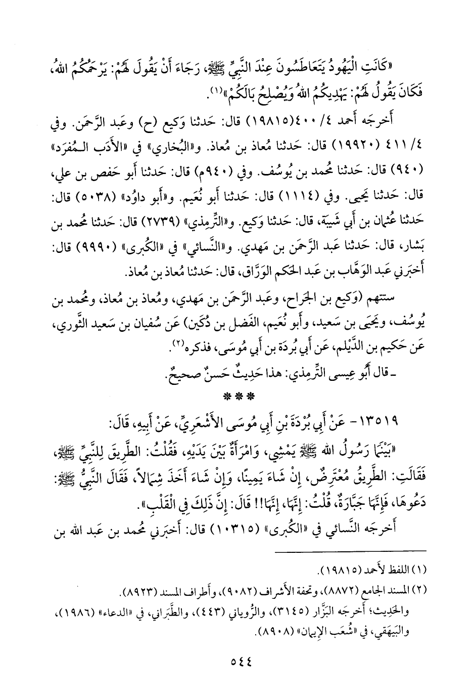 (¬١) المسند الجامع (٨٨٧٣)، وتحفة الأشراف (٩٠٩٧).