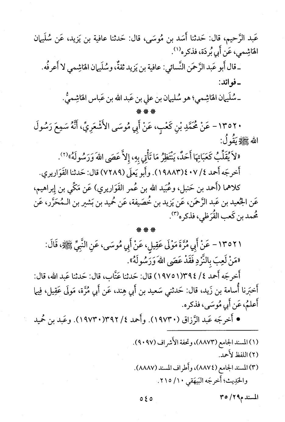 ١٣٥٢١ - عن أبي مرة مولى عَقِيل، عن أبي موسى، عن النبي صَلى الله عَليه وسَلم قال: