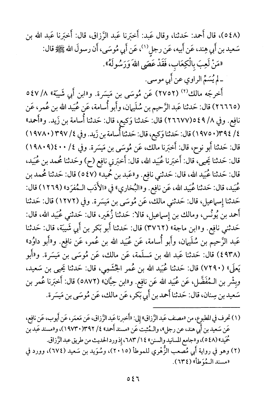 (¬٢) المسند الجامع (٨٨٧٥)، وتحفة الأشراف (٨٩٩٧)، وأطراف المسند (٨٨٦٨ و ٨٩٥٨).