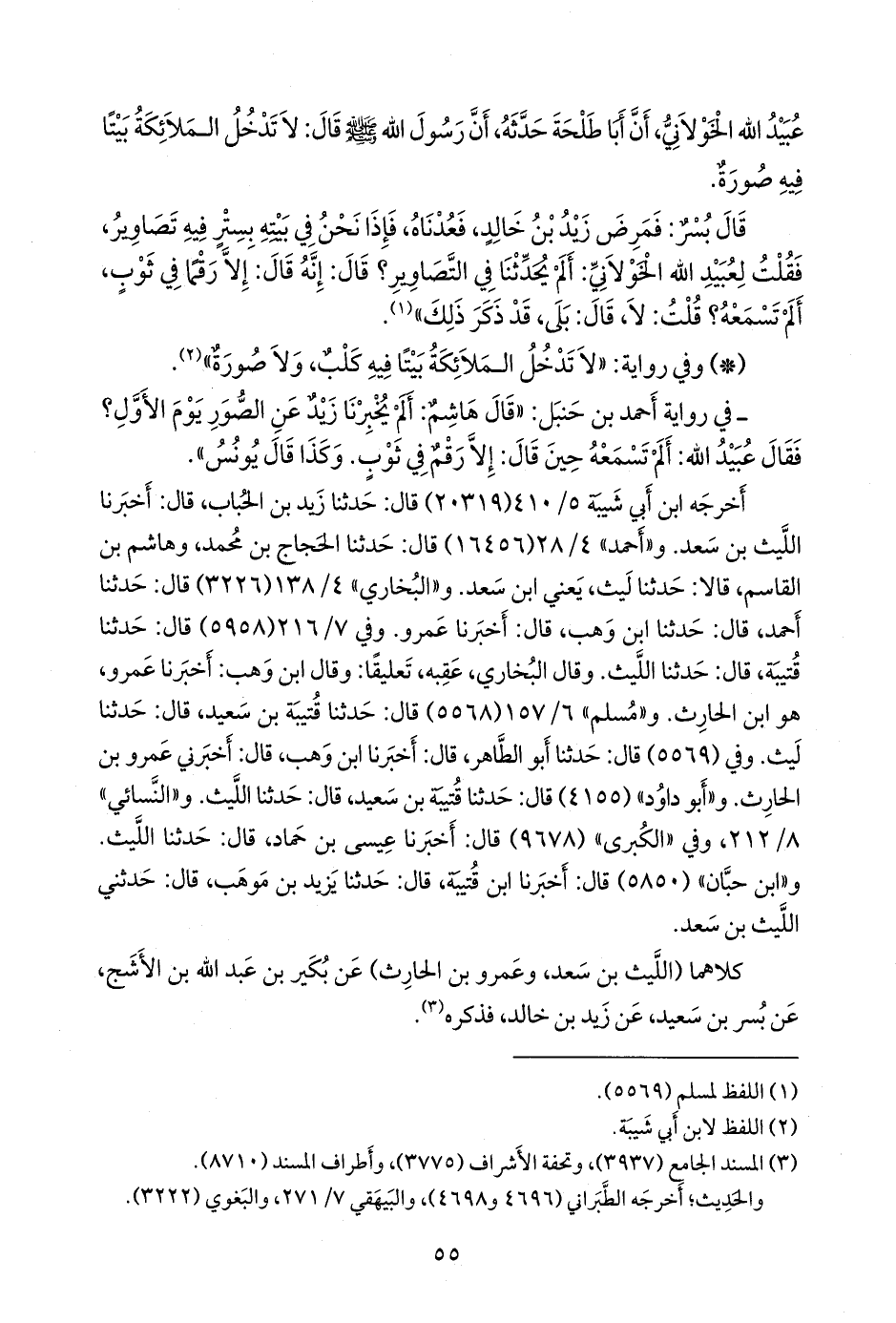 ـ في رواية أحمد بن حنبل: «قال هاشم: ألم يخبرنا زيد عن الصور يوم الأول؟ فقال عُبيد الله: ألم تسمعه حين قال: إلا رقم في ثوب. وكذا قال يونس».
