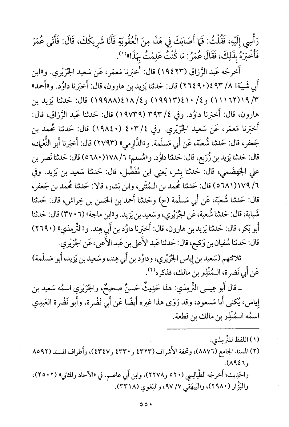 - قال التِّرمِذي: هذا حديثٌ حسنٌ صحيحٌ، والجُريري اسمه سعيد بن إياس، يكنى أبا مسعود، وقد روى هذا غيره أيضا عن أبي نضرة، وأَبو نضرة العبدي اسمه المنذر بن مالك بن قطعة.