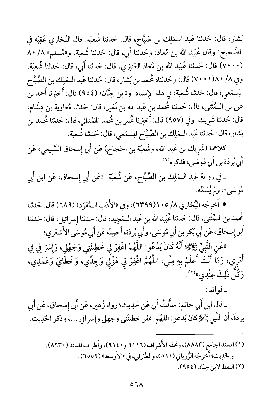- قال عبد الرَّحمَن بن أبي حاتم الرازي: سألتُ أبي عن حديثٍ؛ رواه زهير، عن أبي إسحاق، عن أبي بردة، أن النبي صَلى الله عَليه وسَلم كان يدعو: اللهم اغفر خطيئتي وجهلي وإسرافي ... ، وذكر الحديث
