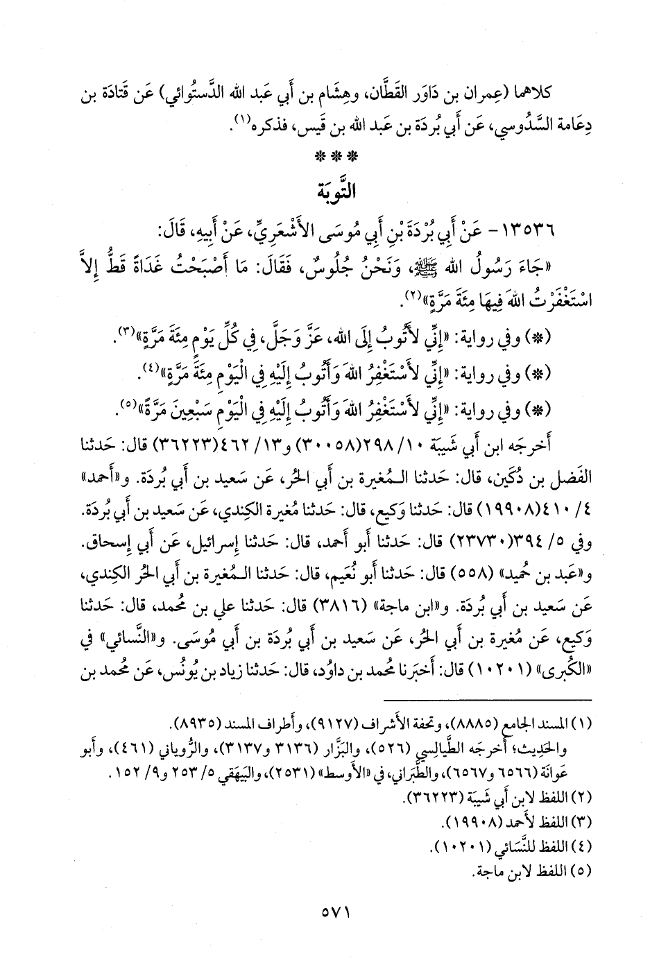 (¬٥) المسند الجامع (٨٨٨٦)، وتحفة الأشراف (٩٠٨٩ و ٩١١٩)، وأطراف المسند (٢٢١٤ و ٨٩٢٨)، ومَجمَع الزوائد ١٠/ ٢٠٩، وإتحاف الخِيرَة المَهَرة (٧٢٣٦)، والمطالب العالية (٣٢٦٠).