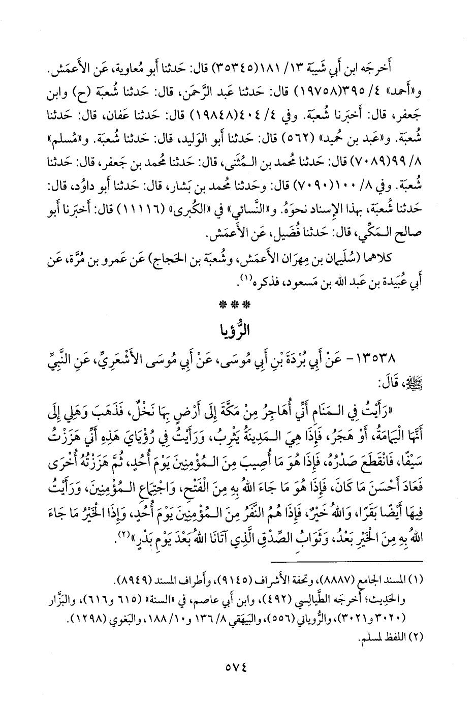 وفي ٤/ ٤٠٤ (١٩٨٤٨) قال: حدثنا عفان، قال: حدثنا شعبة. و «عَبد بن حُميد» (٥٦٢) قال: حدثنا أَبو الوليد، قال: حدثنا شعبة. و «مسلم» ٨/ ٩٩ (٧٠٨٩) قال: حدثنا محمد بن المثنى، قال: حدثنا محمد بن جعفر، قال: حدثنا شعبة. وفي ٨/ ١٠٠ (٧٠٩٠) قال: وحدثنا محمد بن بشار، قال: حدثنا أَبو داود، قال: حدثنا شعبة، بهذا الإسناد نحوه. و «النَّسَائي» في «الكبرى» (١١١١٦) قال: أخبرنا أَبو صالح المكي، قال: حدثنا فضيل، عن الأعمش.