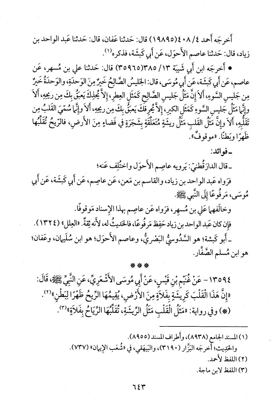 (¬٣) المسند الجامع (٨٩٣٩)، وتحفة الأشراف (٩٠٢٤)، وأطراف المسند (٨٨٨٣)، وإتحاف الخِيرَة المَهَرة (١٩٣).