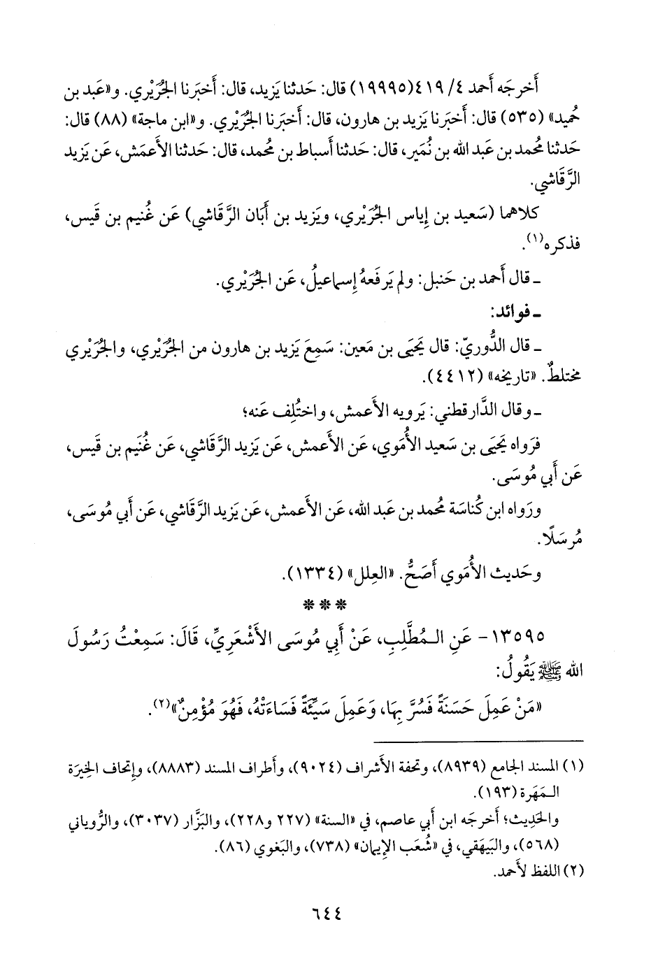 ١٣٥٩٥ - عن المطلب، عن أبي موسى الأشعري، قال: سمعت رسول الله صَلى الله عَليه وسَلم يقول: