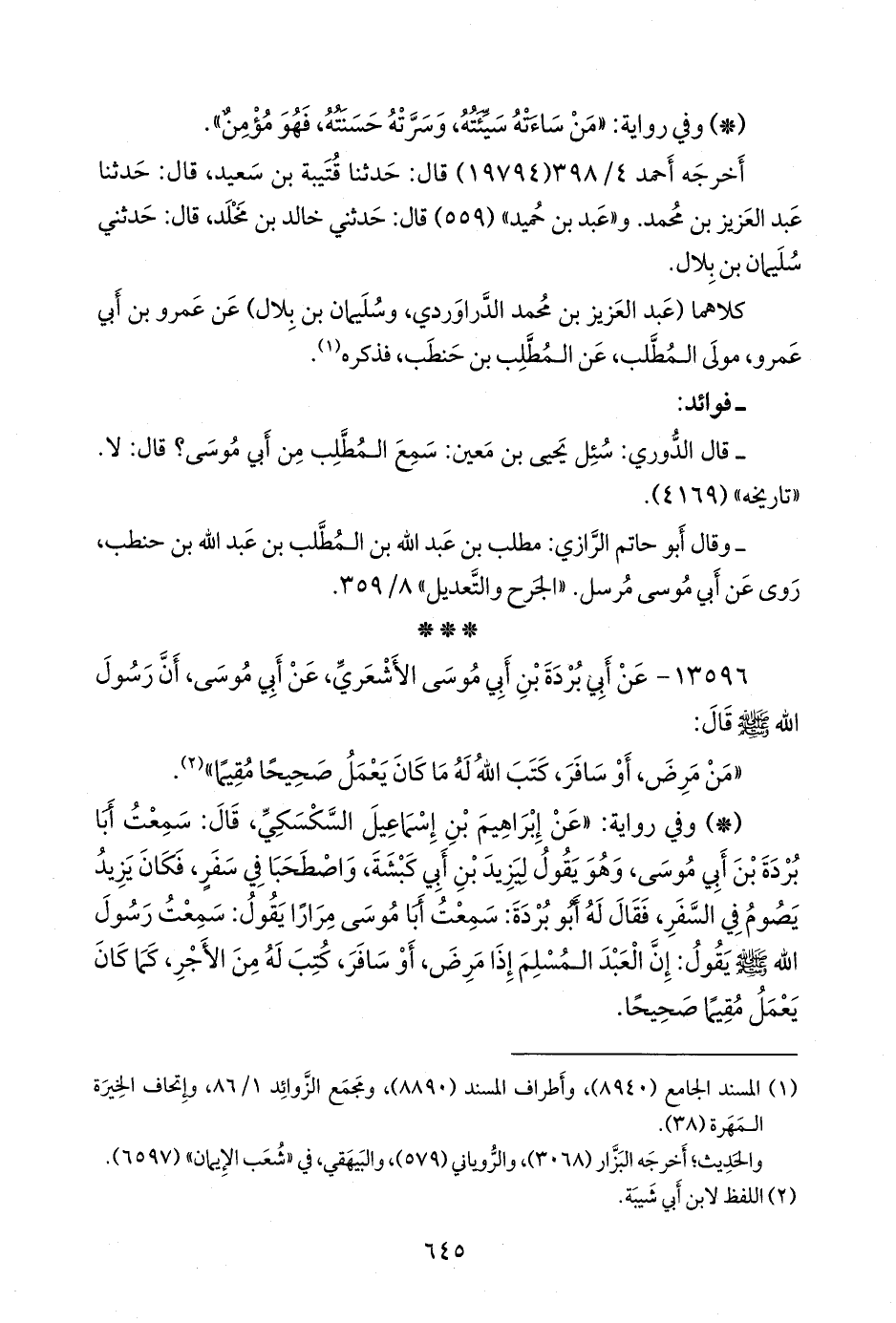١٣٥٩٦ - عن أبي بردة بن أبي موسى الأشعري، عن أبي موسى، قال: قال: قال رسول الله صَلى الله عَليه وسَلم: