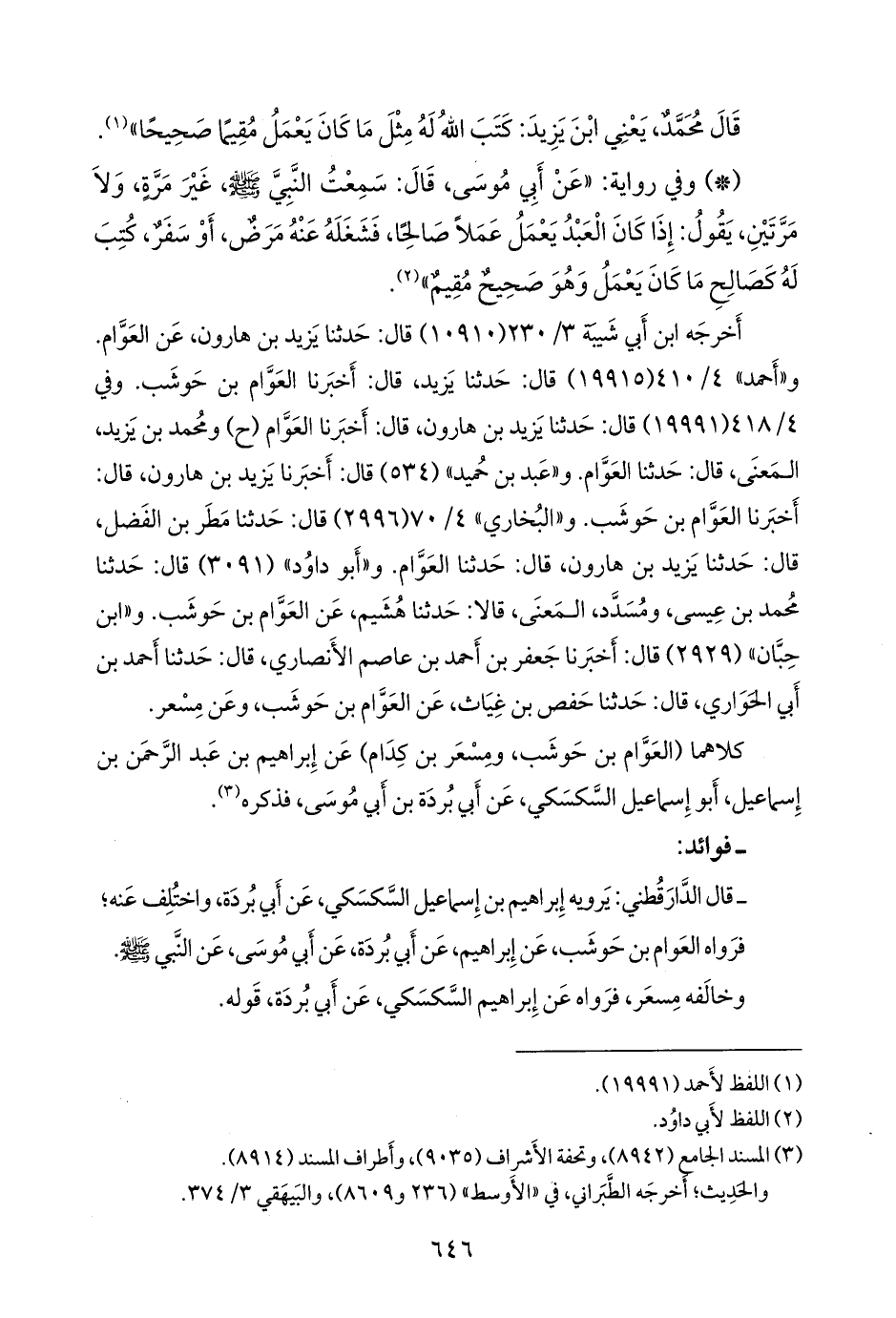 - وقال الدارقُطني: أخرج البخاري، رحمه الله، حديث العوام بن حوشب، عن إبراهيم بن عبد الرَّحمَن السكسكي، عن أبي بردة، عن أبي موسى، عن النبي صَلى الله عَليه وسَلم قال: إذا مرض العبد، أو سافر، يقول الله عز وجل: اكتبوا لعبدي ما كان يعمل صحيحا مقيما، أو كما قال.
