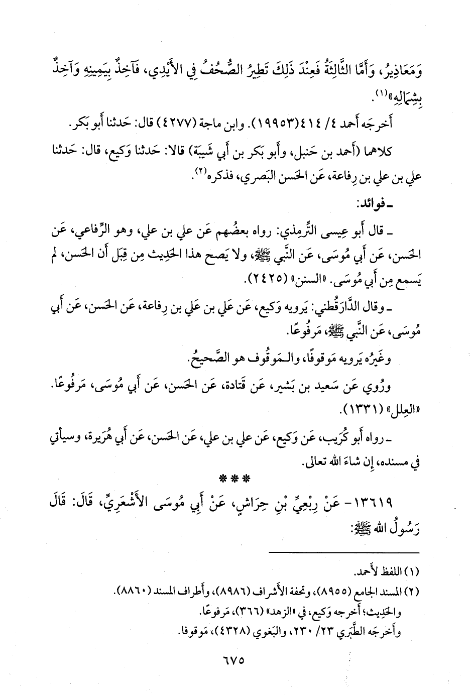 ١٣٦١٩ - عن رِبعي بن حِراش، عن أبي موسى الأشعري، قال: قال رسول الله صَلى الله عَليه وسَلم: