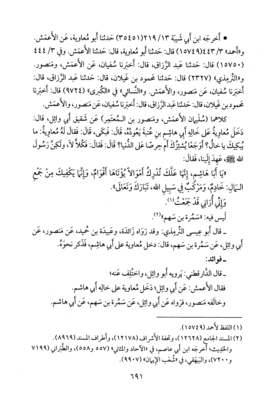 فقال الأعمش: عن أبي وائل؛ دخل معاوية على خاله أبي هاشم.