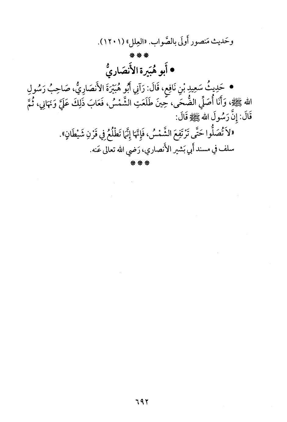 • حديث سعيد بن نافع، قال: رآني أَبو هبيرة الأَنصاري، صاحب رسول الله صَلى الله عَليه وسَلم وأنا أصلي الضحى، حين طلعت الشمس، فعاب ذلك علي ونهاني، ثم قال: إن رسول الله صَلى الله عَليه وسَلم قال: