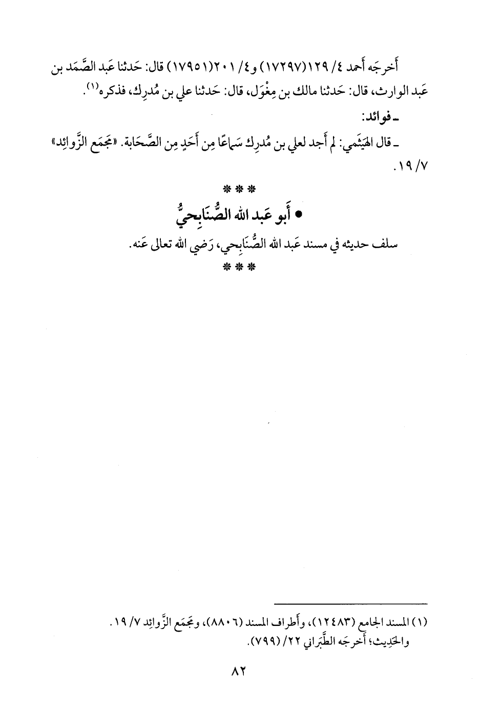 سلف حديثه في مسند عبد الله الصُّنَابحي، رضي الله تعالى عنه.
