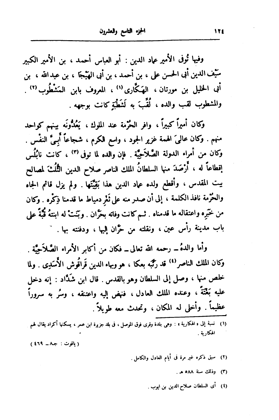 وفيها توفى الأمير عماد الدين: أبو العباس أحمد، بن الأمير الكبير سيف الدين أبى الحسن على، بن أحمد، بن أبى الهيجا، بن عبد الله، بن أبى الخليل بن مورتان، الهكّارى «1» ، المعروف بابن المشطوب «2» .