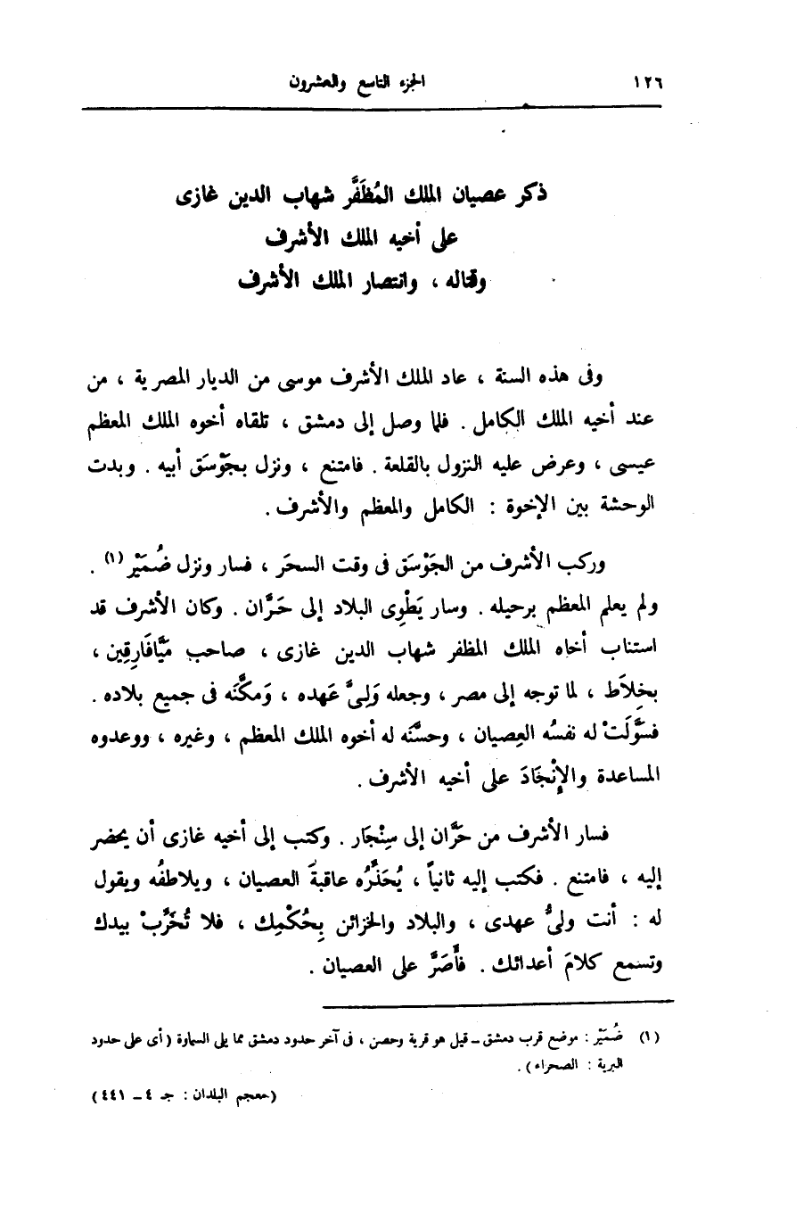 ذكر عصيان الملك الملك المظفّر شهاب الدين غازى على أخيه الملك الأشرف وقتاله، وانتصار الملك الأشرف