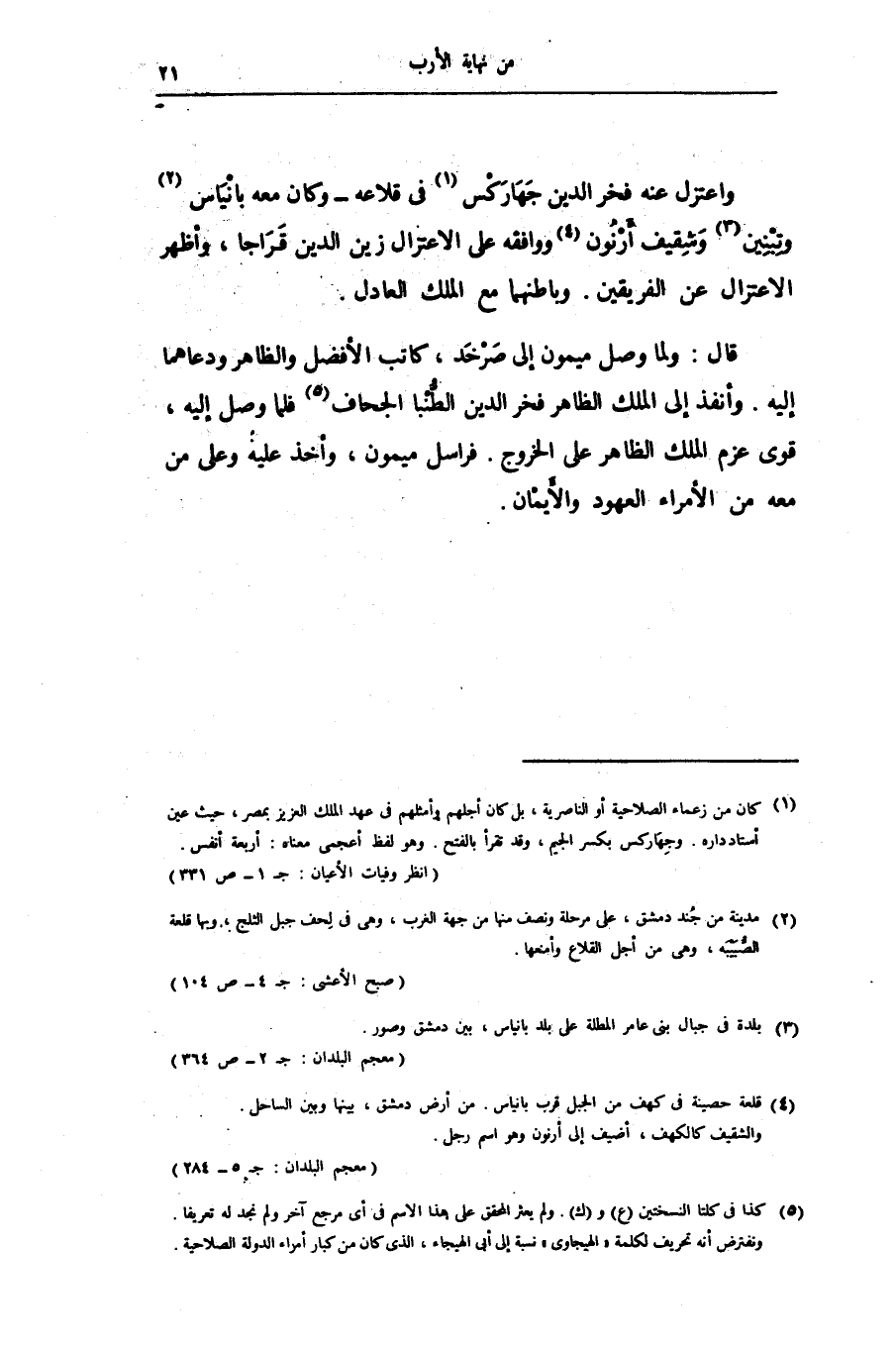 واعتزل عنه فخر الدين جهاركس «1» فى قلاعه- وكان معه بانياس «2» وتبنين «3» وشقيف أرنون «4» ووافقه على الاعتزال زين الدين قراجا، وأظهر الاعتزال عن الفريقين. وباطنهما مع الملك العادل.