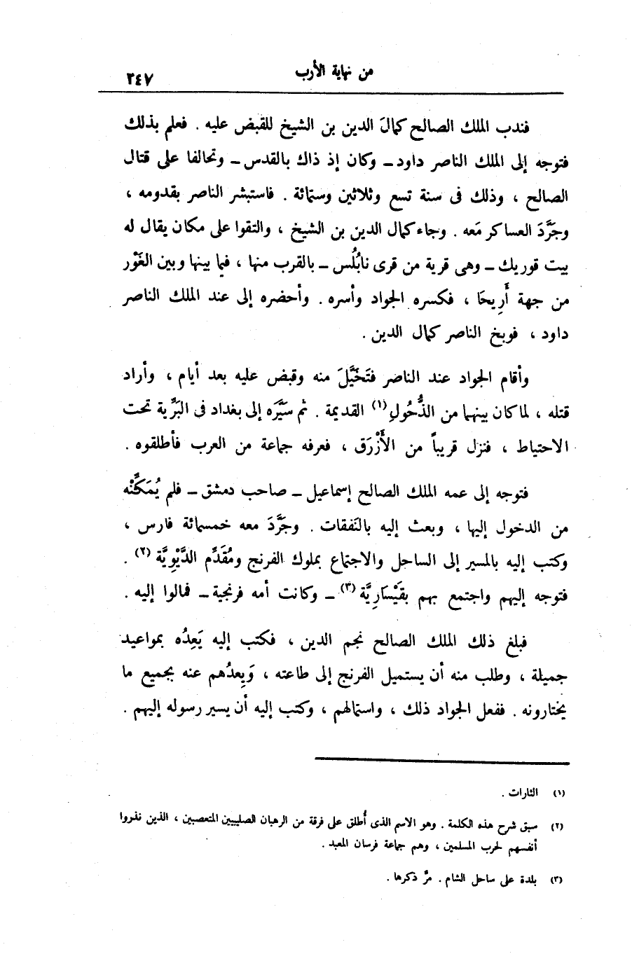 فتوجه إلى عمه الملك الصالح إسماعيل- صاحب دمشق- فلم يمكّنه من الدخول إليها، وبعث إليه بالنفقات. وجرّد معه خمسمائة فارس، وكتب إليه بالمسير إلى الساحل والاجتماع بملوك الفرنج ومقدّم الدّيويّة «2» .