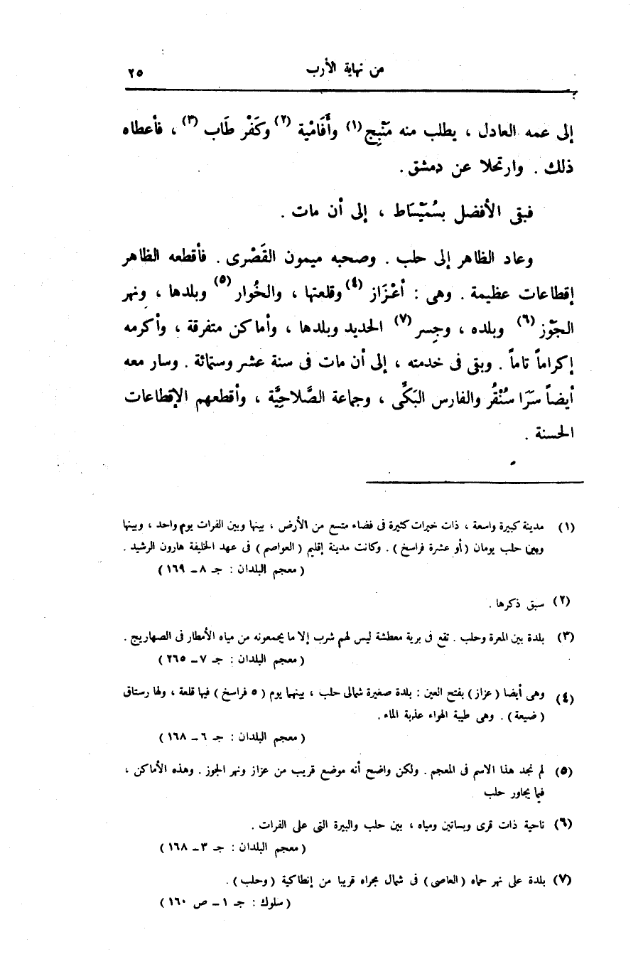 وعاد الظاهر إلى حلب. وصحبه ميمون القصرى. فأقطعه الظاهر إقطاعات عظيمة. وهى: أعزاز «4» وقلعتها، والخوار «5» وبلدها، ونهر الجوز «6» وبلده، وجسر «7» الحديد وبلدها، وأماكن متفرقة، وأكرمه إكراما تاما. وبقى فى خدمته، إلى أن مات فى سنة عشر وستمائة. وسار معه أيضا سرا سنقر والفارس البكّى، وجماعة الصّلاحيّة، وأقطعهم الإقطاعات الحسنة.