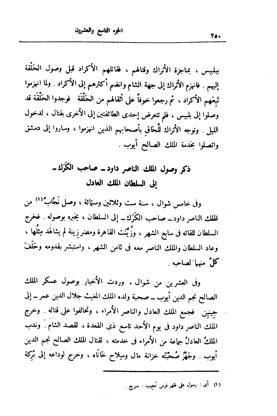 ذكر وصول الملك الناصر داود- صاحب الكرك- إلى السلطان الملك العادل