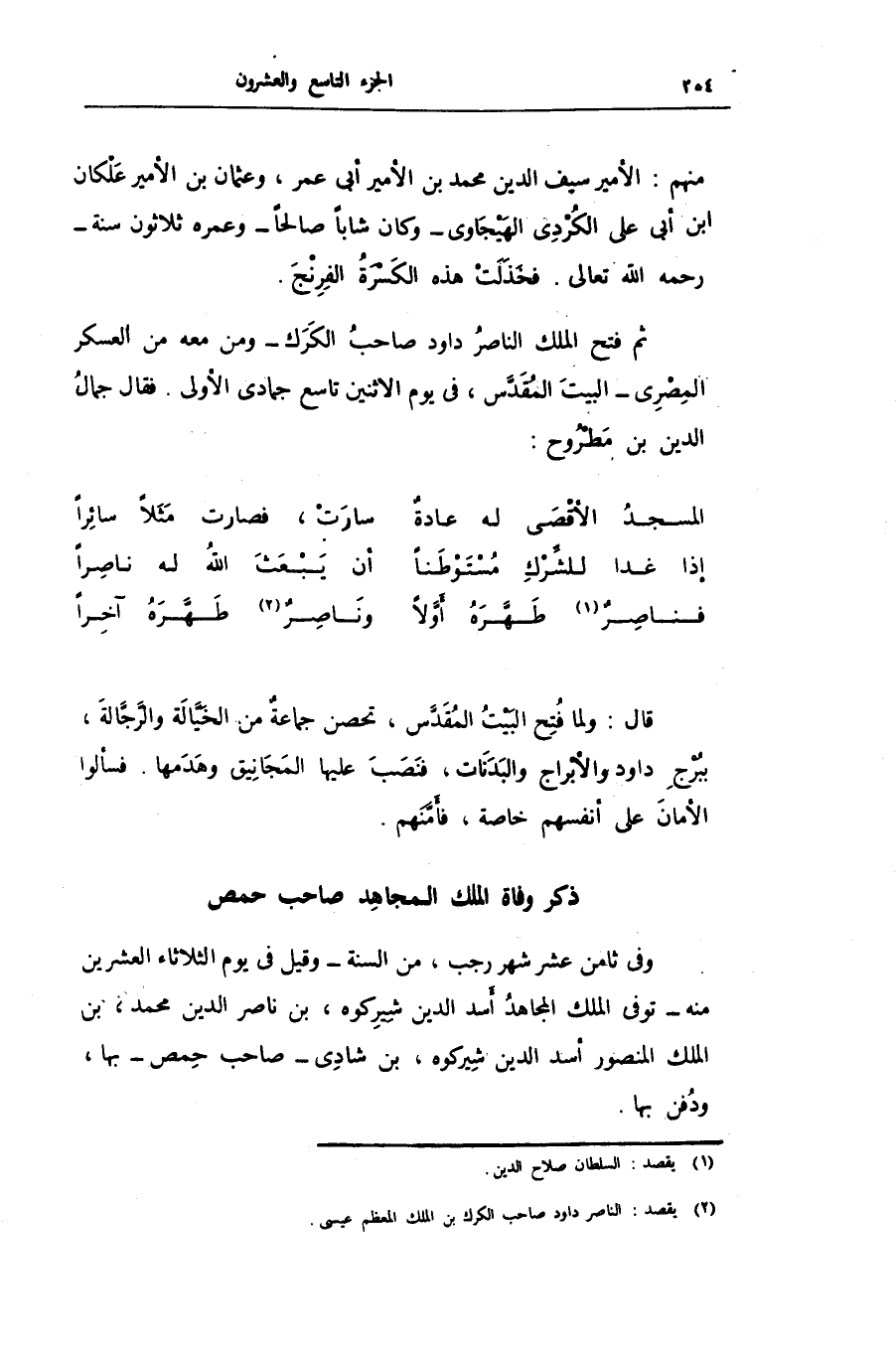منهم: الأمير سيف الدين محمد بن الأمير أبى عمر، وعثمان بن الأمير علكان ابن أبى على الكردى الهيجاوى- وكان شابا صالحا- وعمره ثلاثون سنة- رحمه الله تعالى. فخذلت هذه الكسرة الفرنج.