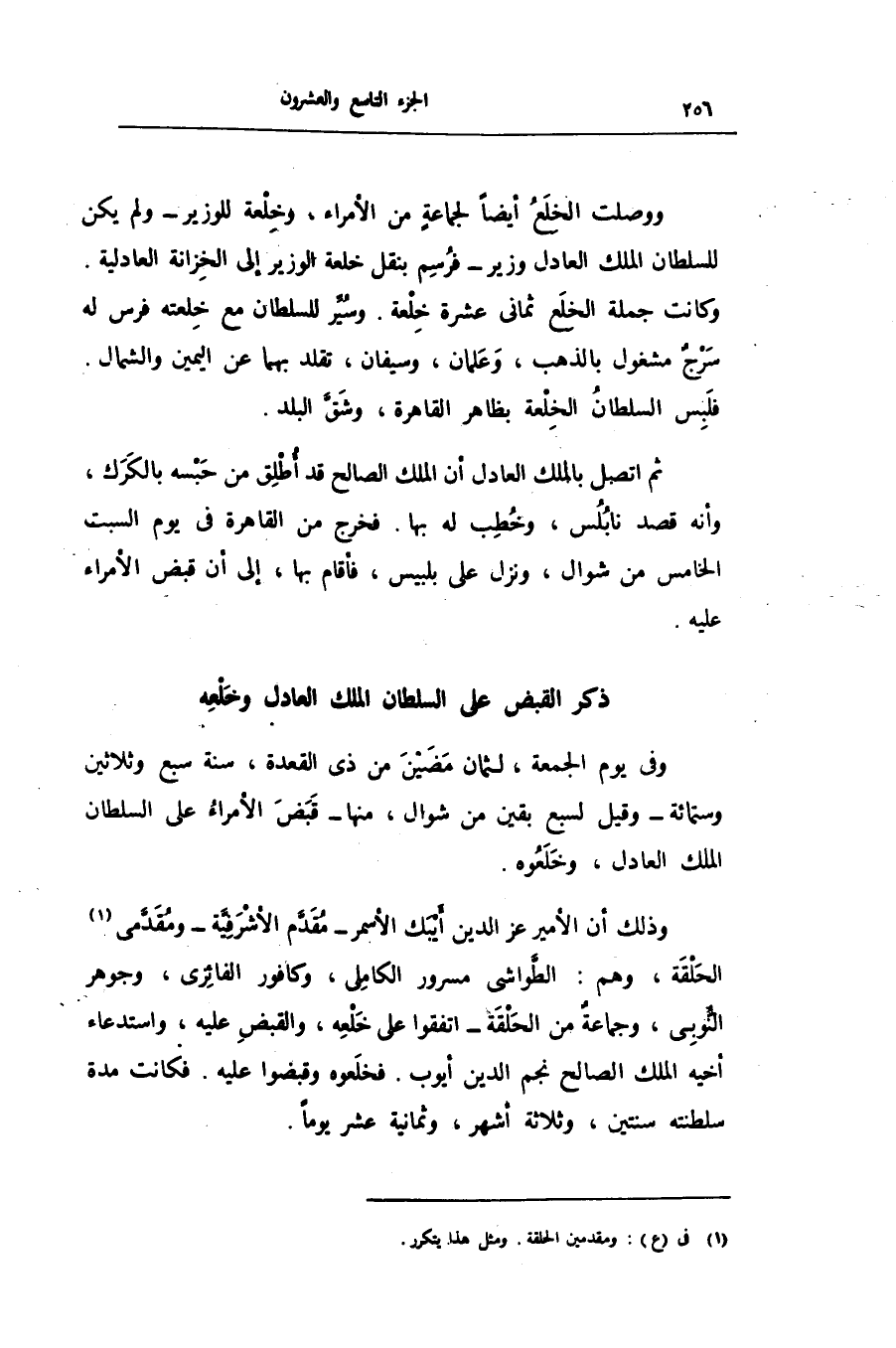 ووصلت الخلع أيضا لجماعة من الأمراء، وخلعة للوزير- ولم يكن للسلطان الملك العادل وزير- فرسم بنقل خلعة الوزير إلى الخزانة العادلية.