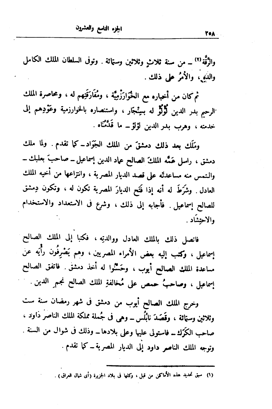 والرّقّة «1» - من سنة ثلاث وثلاثين وستمائة. وتوفى السلطان الملك الكامل والده، والأمر على ذلك.