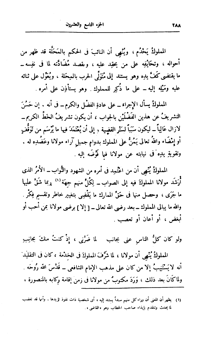 المملوك ينهى أن مولانا، لما شرّف المملوك فى الخدمة، كان فى التقليد أنه لا يستنيب إلا من كان على مذهب الإمام الشافعى- قدّس الله روحه.