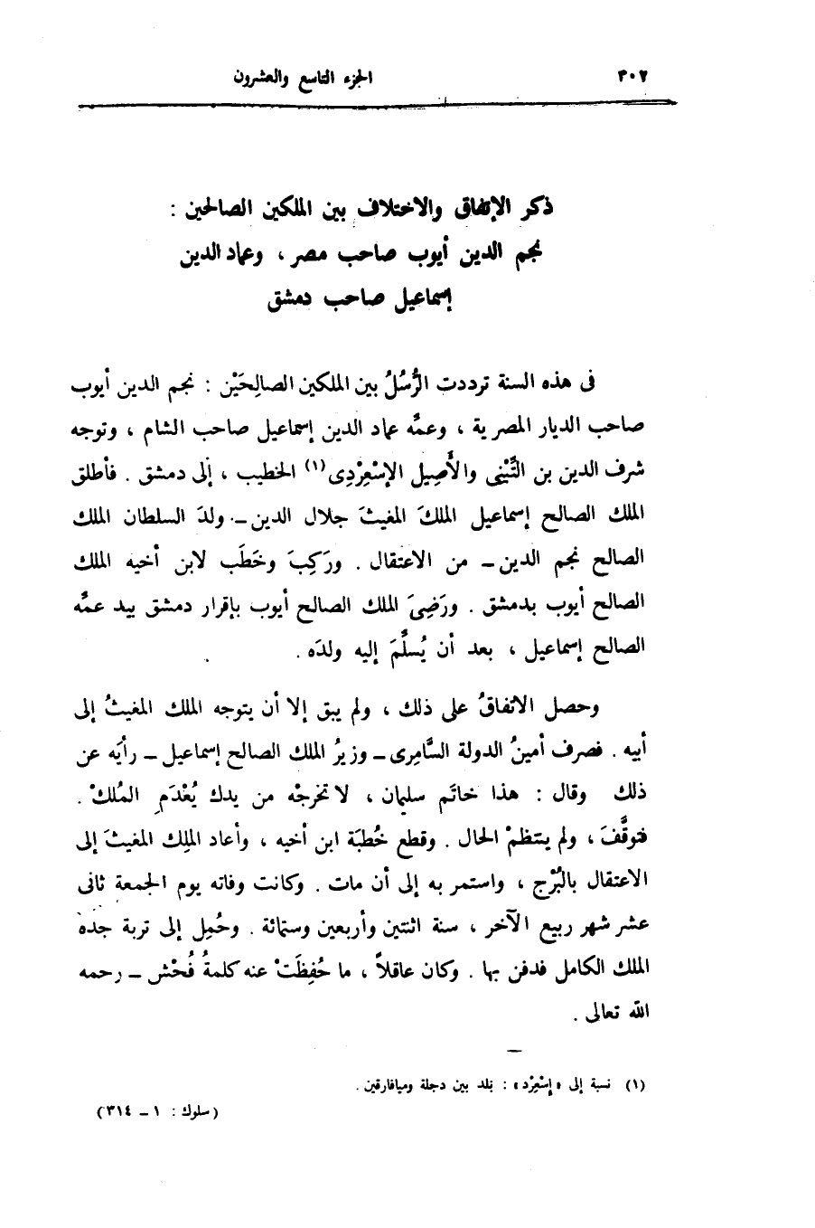 ذكر الإتفاق والاختلاف بين الملكين الصالحين: نجم الدين أيوب صاحب مصر، وعماد الدين إسماعيل صاحب دمشق