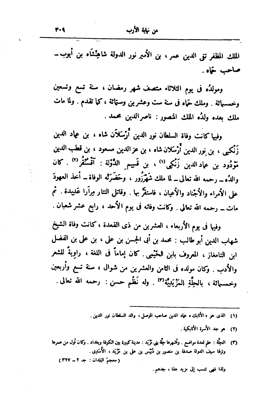 وفيها كانت وفاة السلطان نور الدين أرسلان شاه، بن عماد الدين زنكى، بن نور الدين أرسلان شاه، بن عز الدين مسعود، بن قطب الدين مودود بن عماد الدين زنكى «1» ، بن قسيم الدّولة: آقسنقر «2» . كان والده- رحمه الله تعالى- لما ملك شهرزور، وحضرته الوفاة- أخذ العهود على الأمراء والأجناد والأعيان، فاستقرّ بها. وقاتل التتار مرارا عديدة. ثم مات- رحمه الله تعالى. وكانت وفاته فى يوم الأحد، رابع عشر شعبان.