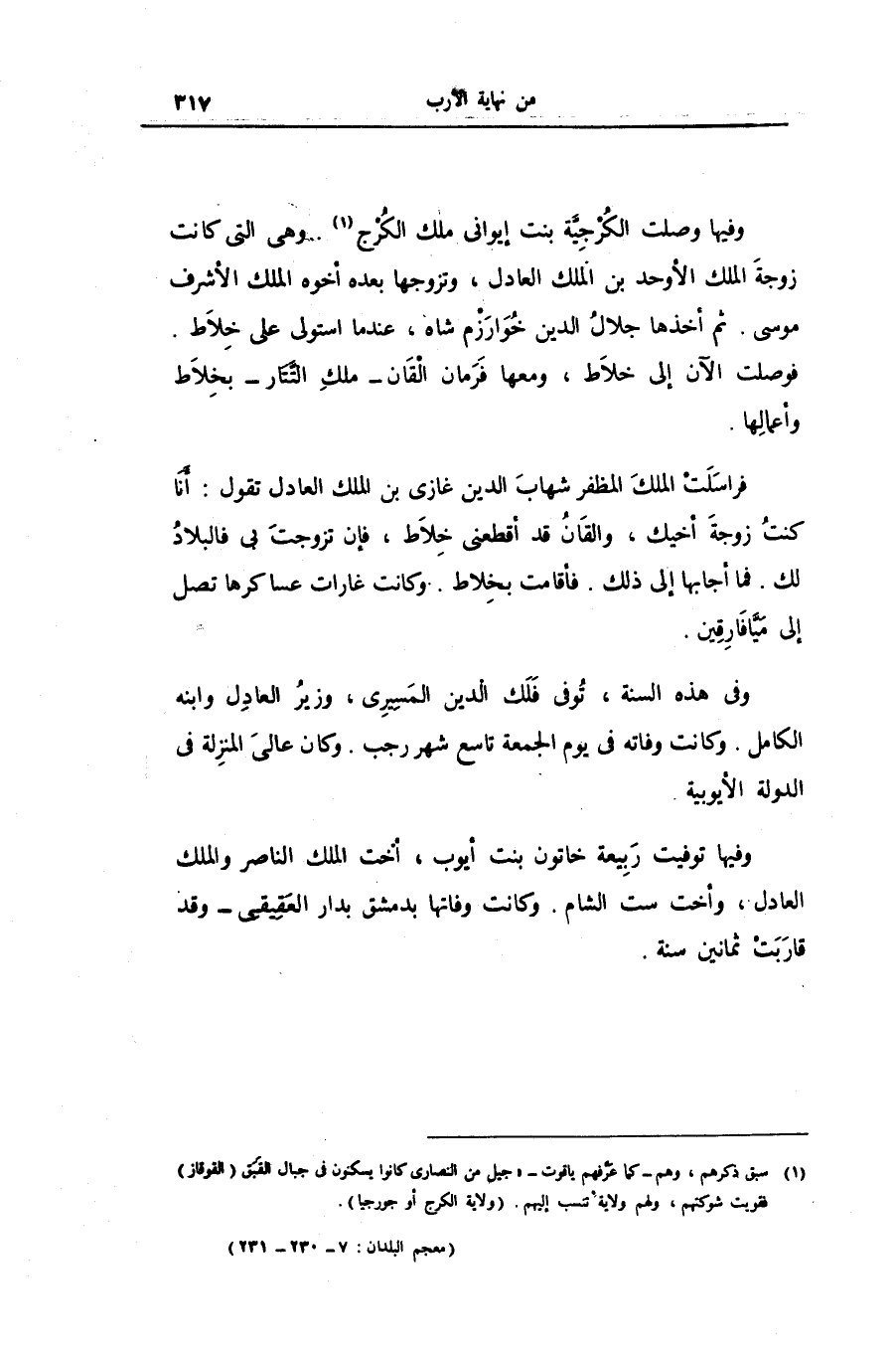 وفيها وصلت الكرجيّة بنت إيوانى ملك الكرج «1» . وهى التى كانت زوجة الملك الأوحد بن الملك العادل، وتزوجها بعده أخوه الملك الأشرف موسى. ثم أخذها جلال الدين خوارزم شاه، عند ما استولى على خلاط.