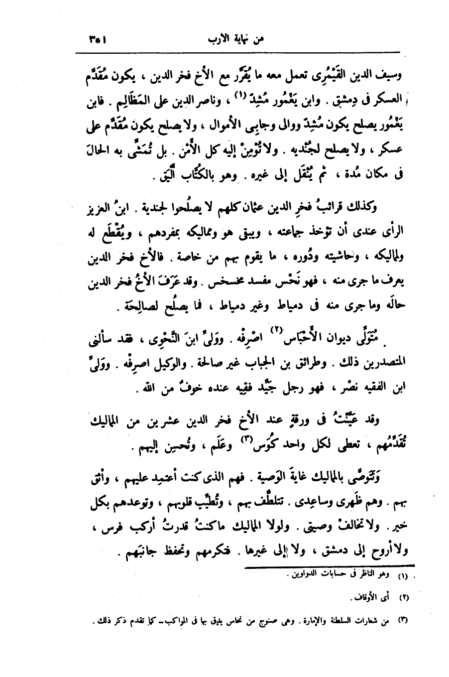 وكذلك قرائب فخر الدين عثمان كلهم لا يصلحوا لجندية. ابن العزيز الرأى عندى أن تؤخذ جماعته، ويبقى هو ومماليكه بمفردهم، ويقطع له ولمماليكه، وحاشيته ودوره، ما يقوم بهم من خاصة. فالأخ فخر الدين يعرف ما جرى منه، فهو نحس مفسد مخسخس. وقد عرف الأخ فخر الدين حاله وما جرى منه فى دمياط وغير دمياط، فما يصلح لصالحة.