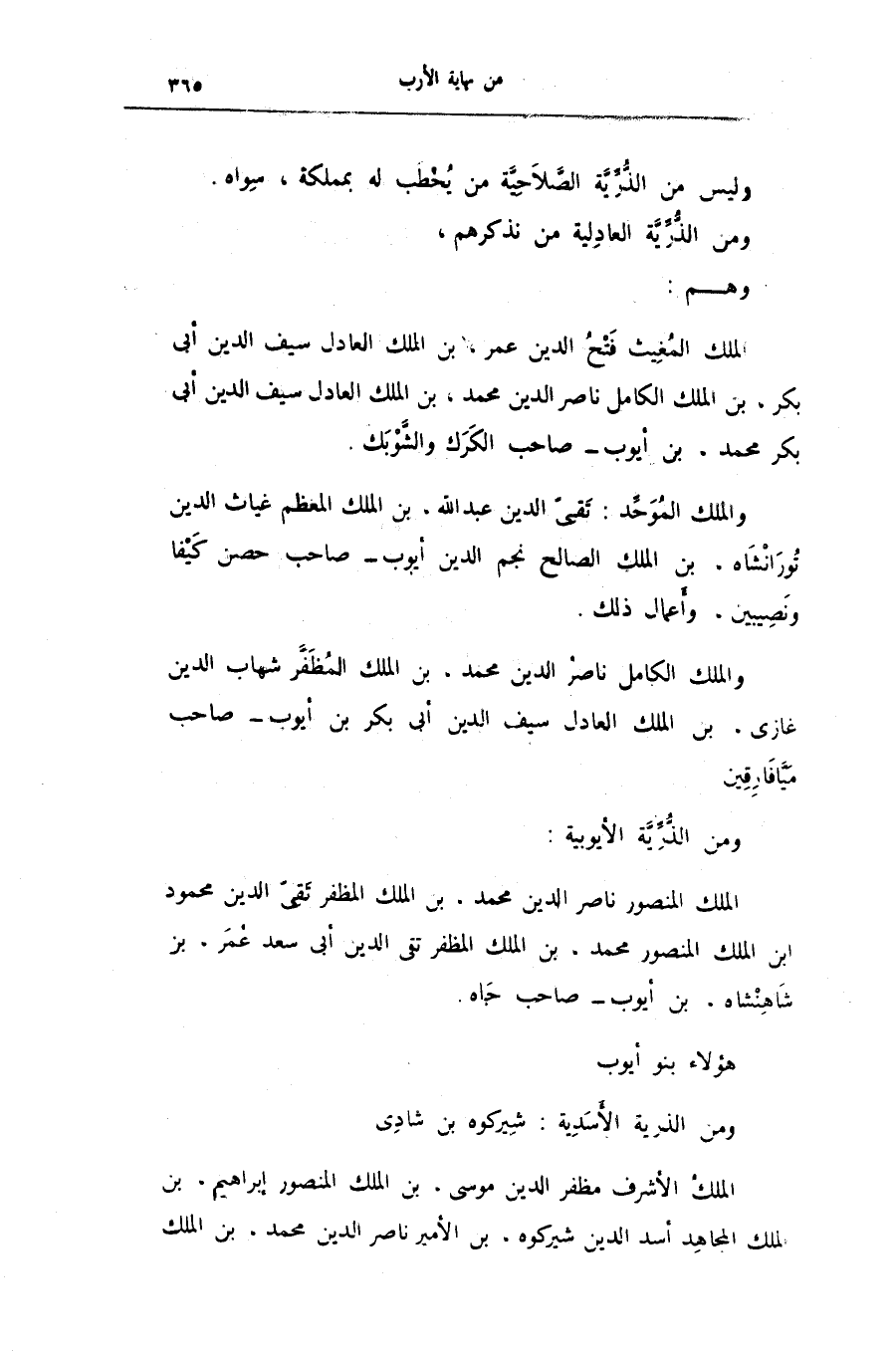 هؤلاء بنو أيوب ومن الذرية الأسدية: شيركوه بن شادى الملك الأشرف مظفر الدين موسى، بن الملك المنصور إبراهيم، بن الملك المجاهد أسد الدين شيركوه، بن الأمير ناصر الدين محمد، بن الملك