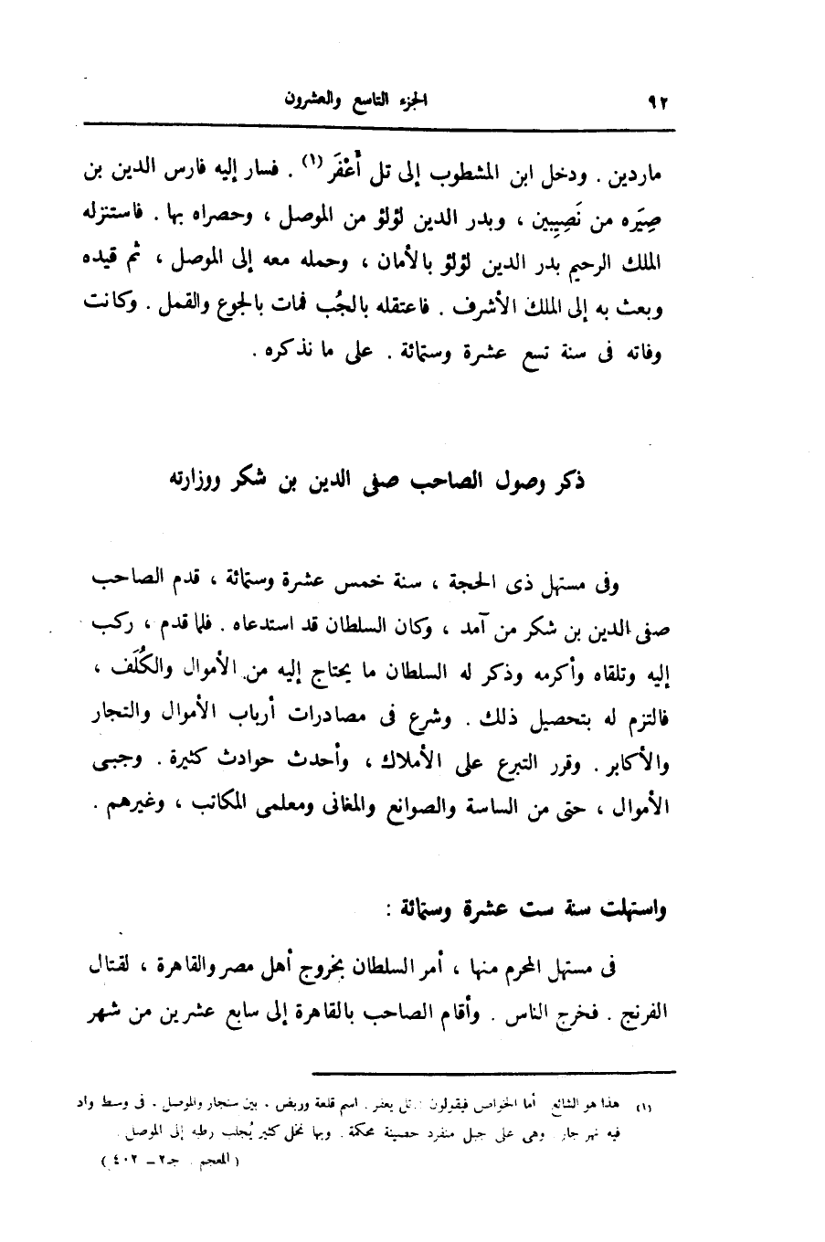 ذكر وصول الصاحب صفى الدين بن شكر ووزارته