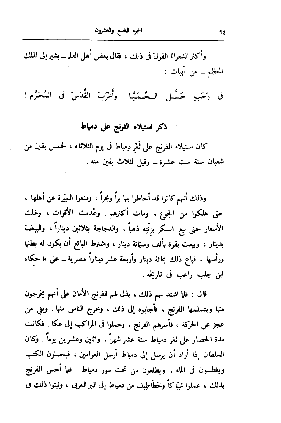 وأكثر الشعراء القول فى ذلك، فقال بعض أهل العلم- يشير إلى الملك المعظم- من أبيات:
