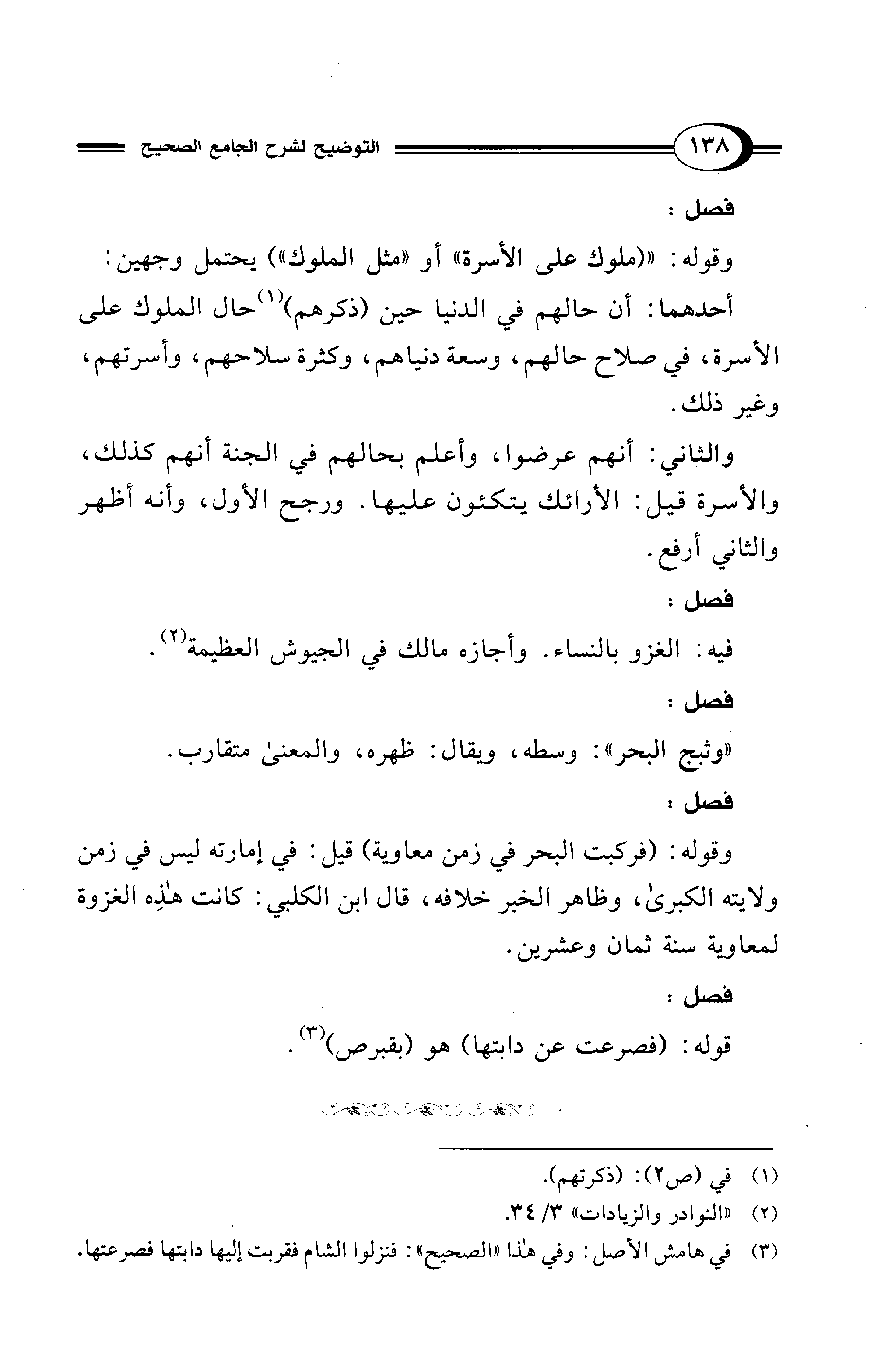 وقوله: " (ملوك على الأسرة" أو "مثل الملوك") يحتمل وجهين: