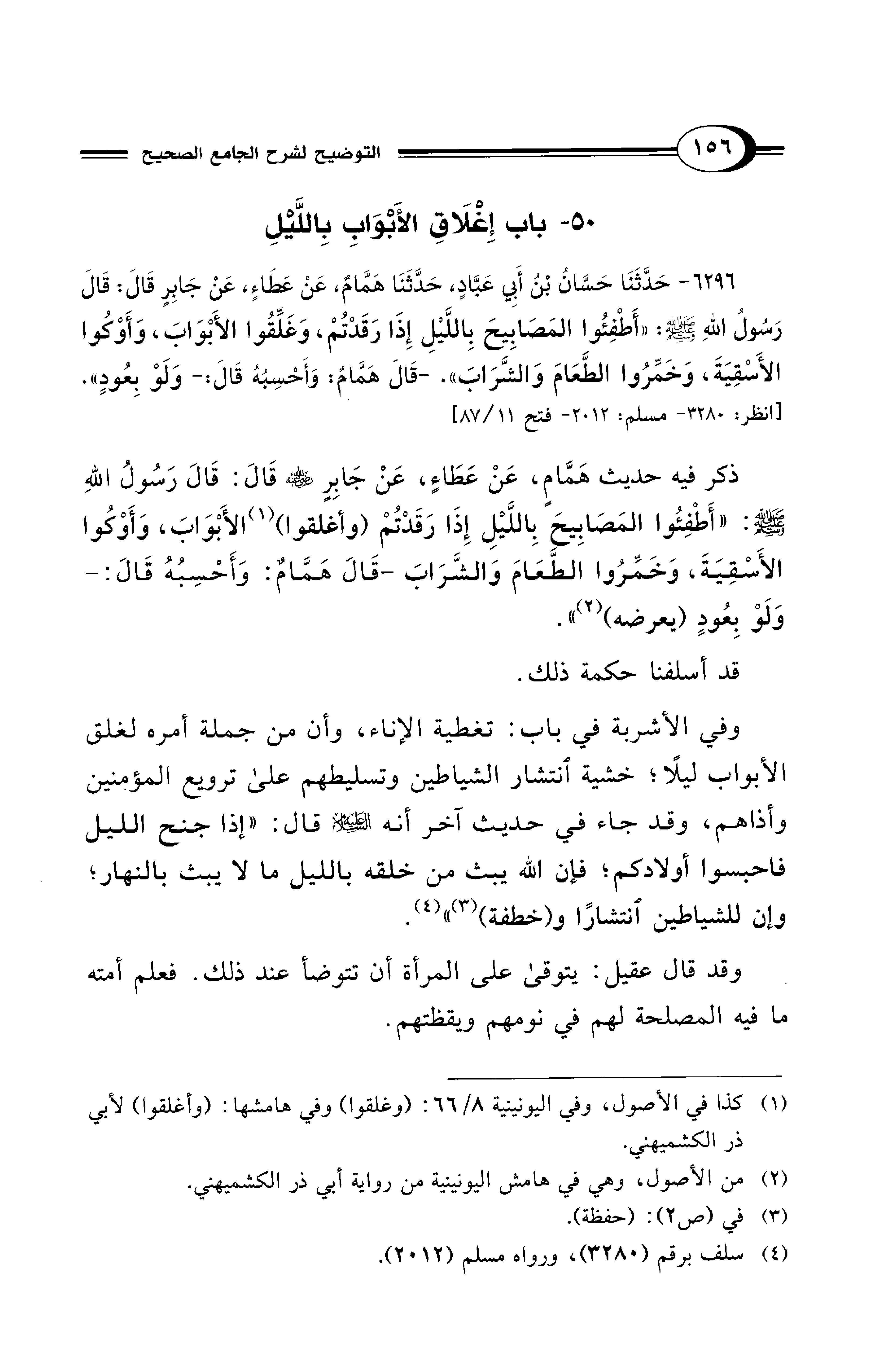 50 - باب إِغْلاَقِ الأَبْوَابِ بِاللَّيْلِ
