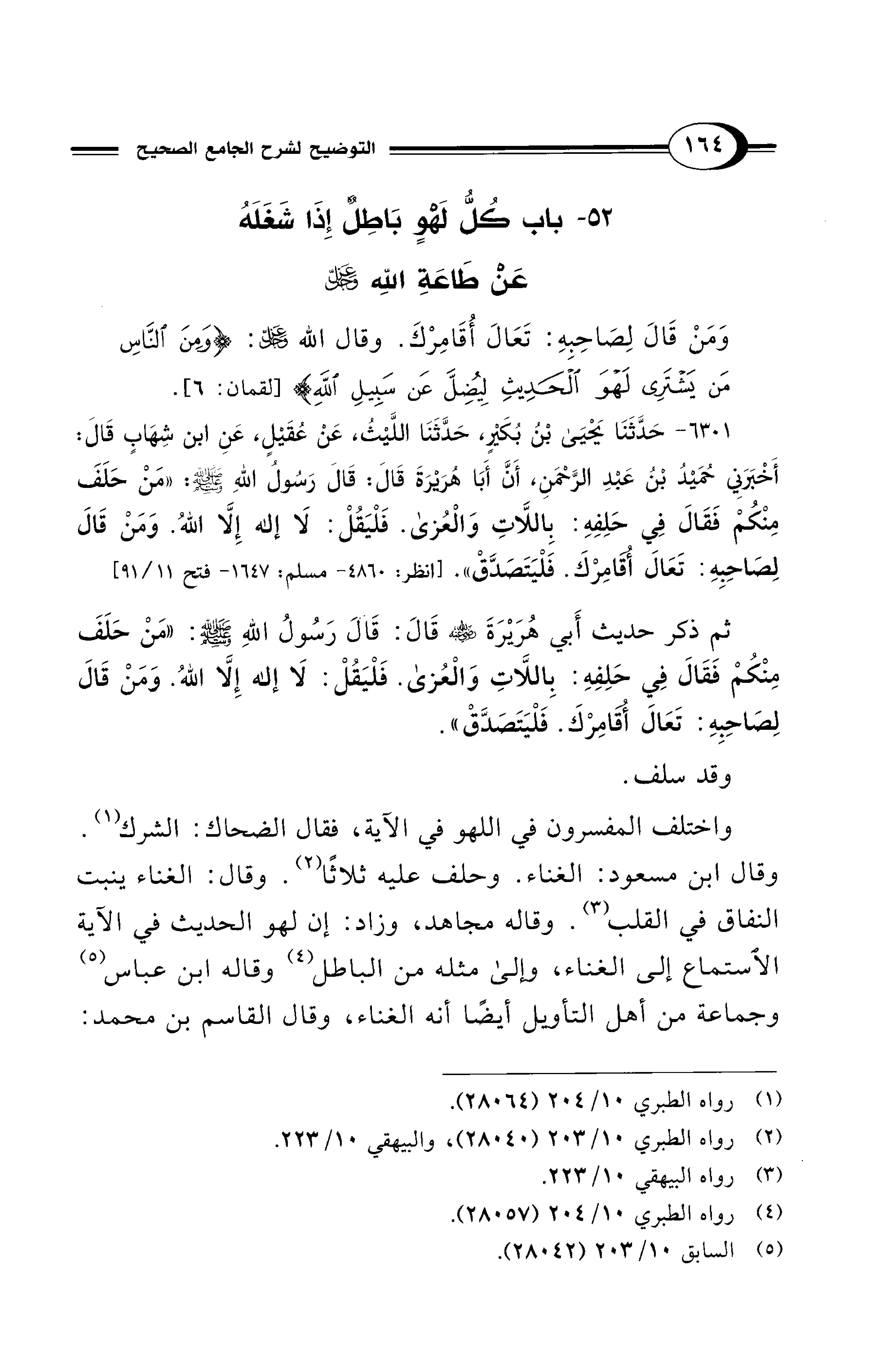 52 - باب كُلُّ لَهْوٍ بَاطِلٌ إِذَا شَغَلَهُ عَنْ طَاعَةِ اللهِ -عَزَّ وَجَلَّ-