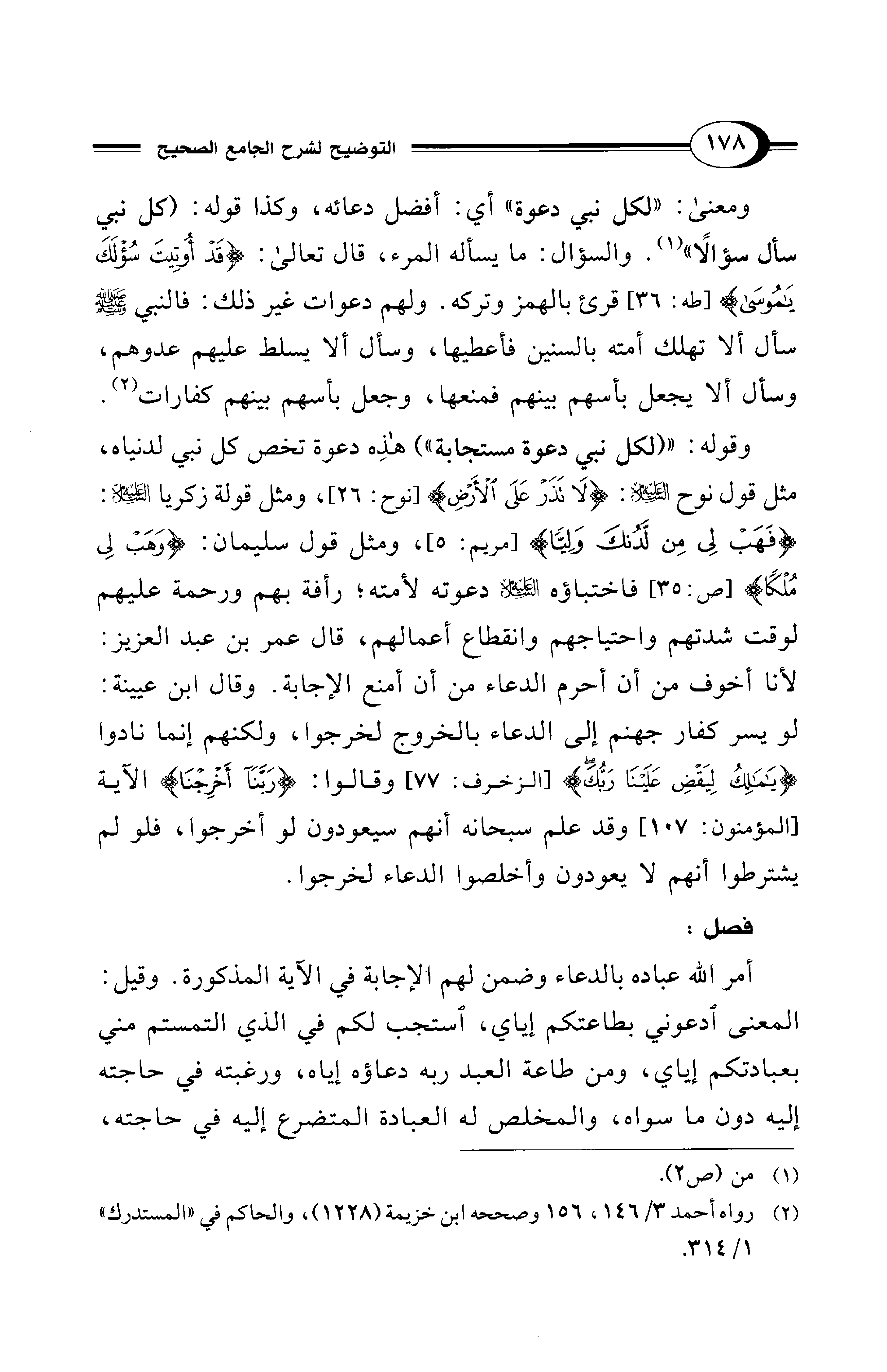 وقوله: " (لكل نبي دعوة مستجابة") هذِه دعوة تخص كل نبي لدنياه، مثل قول نوح - عليه السلام -: {لَا تَذَرْ على الْأَرْضِ} [نوح: 26]، ومثل قولة زكريا - عليه السلام -: {فَهَبْ لِي مِنْ لَدُنْكَ وَلِيًّا} [مريم: 5]، ومثل قول سليمان: {وَهَبْ لِي مُلْكًا} [ص: 35] فاختباؤه - عليه السلام - دعوته لأمته؛ رأفة بهم ورحمة عليهم لوقت شدتهم واحتياجهم وانقطاع أعمالهم، قال عمر بن عبد العزيز: لأنا أخوف من أن أحرم الدعاء من أن أمنع الإجابة. وقال ابن عيينة: لو يسر كفار جهنم إلى الدعاء بالخروج لخرجوا، ولكنهم إنما نادوا {يَا مَالِكُ لِيَقْضِ عَلَيْنَا رَبُّكَ} [الزخرف: 77] وقالوا: {رَبَّنَا أَخْرِجْنَا} الآية [المؤمنون: 107] وقد علم سبحانه أنهم سيعودون لو أخرجوا، فلو لم يشترطوا أنهم لا يعودون وأخلصوا الدعاء لخرجوا.
