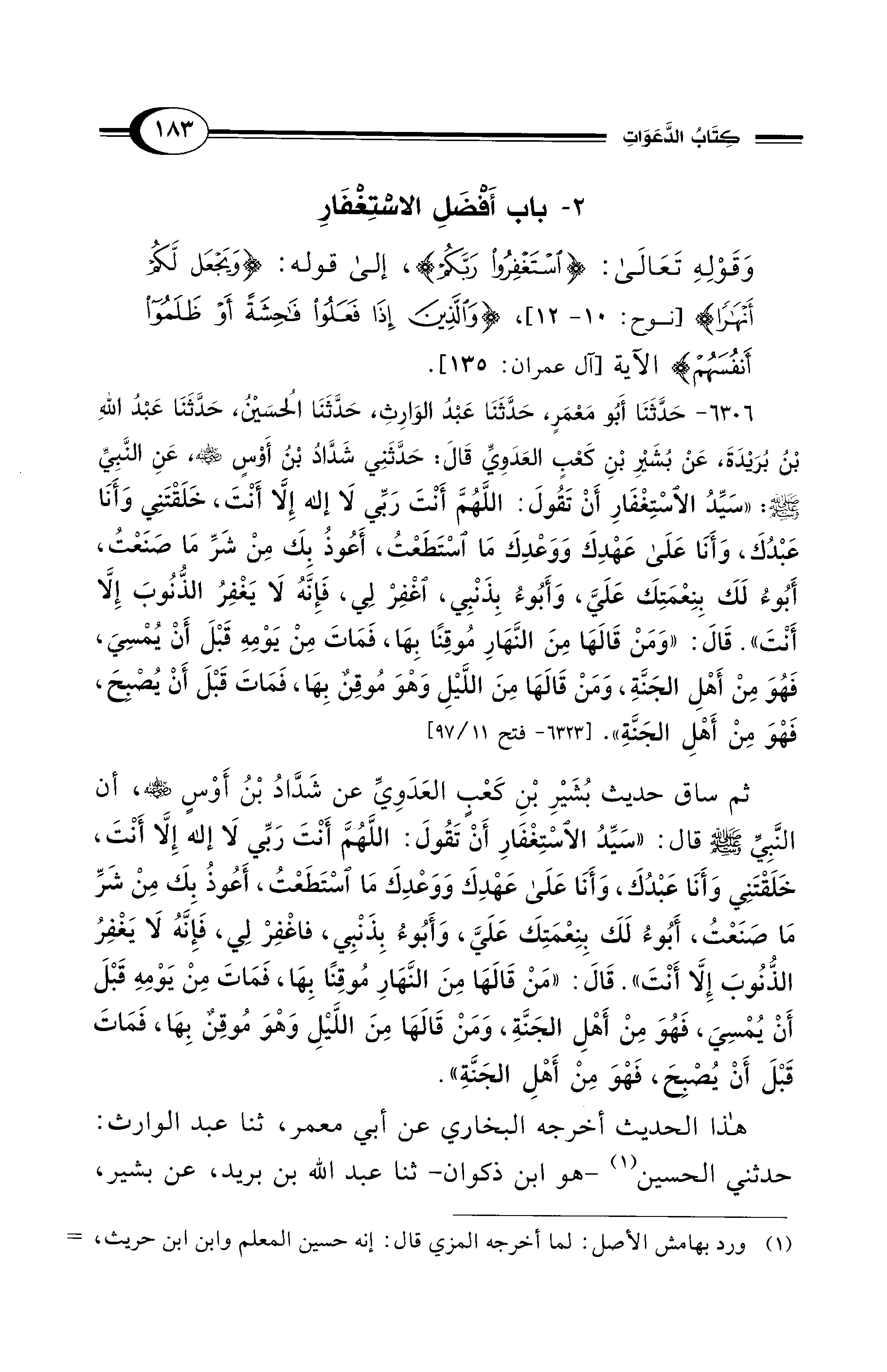 2 - باب أَفْضَلِ الاسْتِغْفَارِ